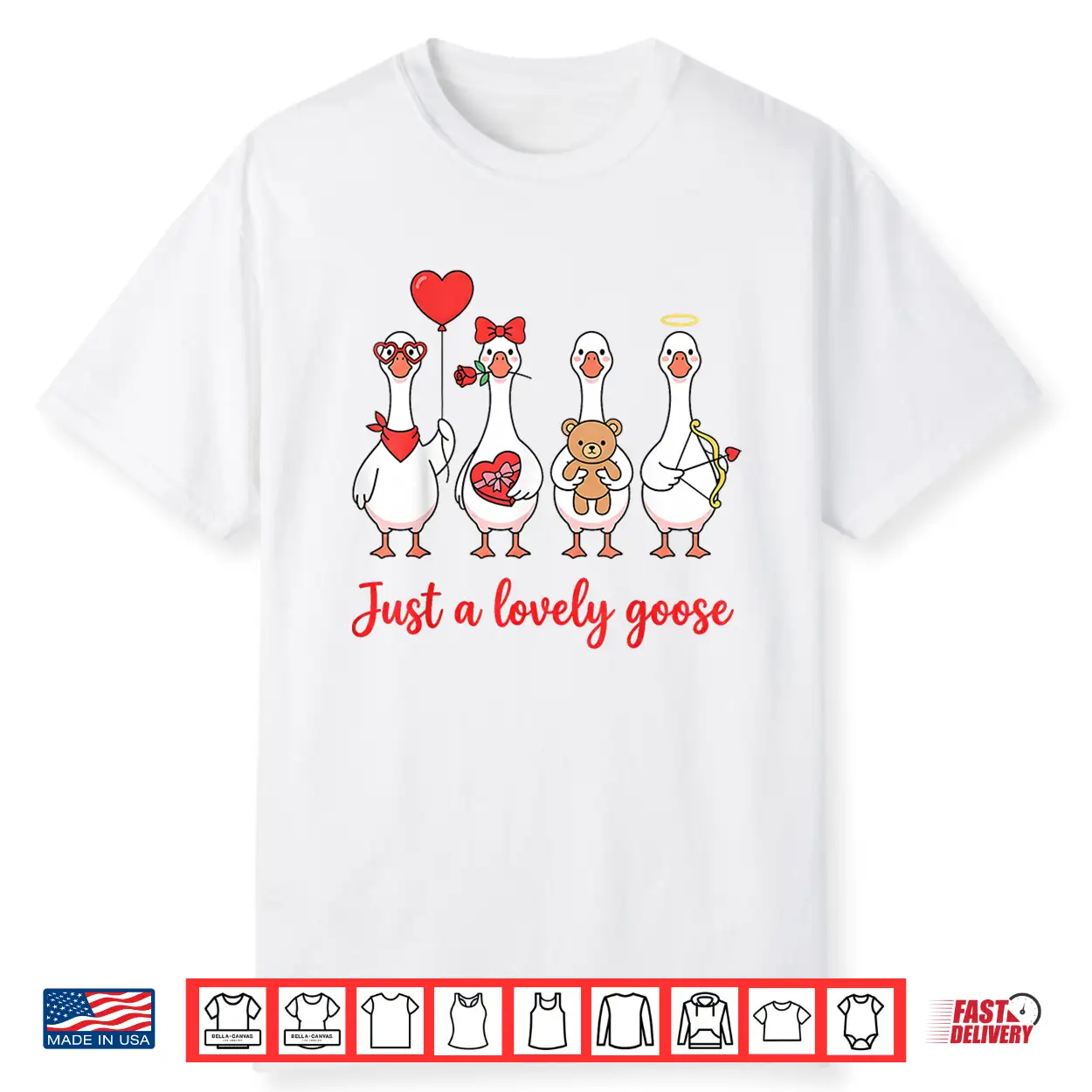 Humor Silly Goose Just A Lovely Goose Valentine’s Day Couple Shirt