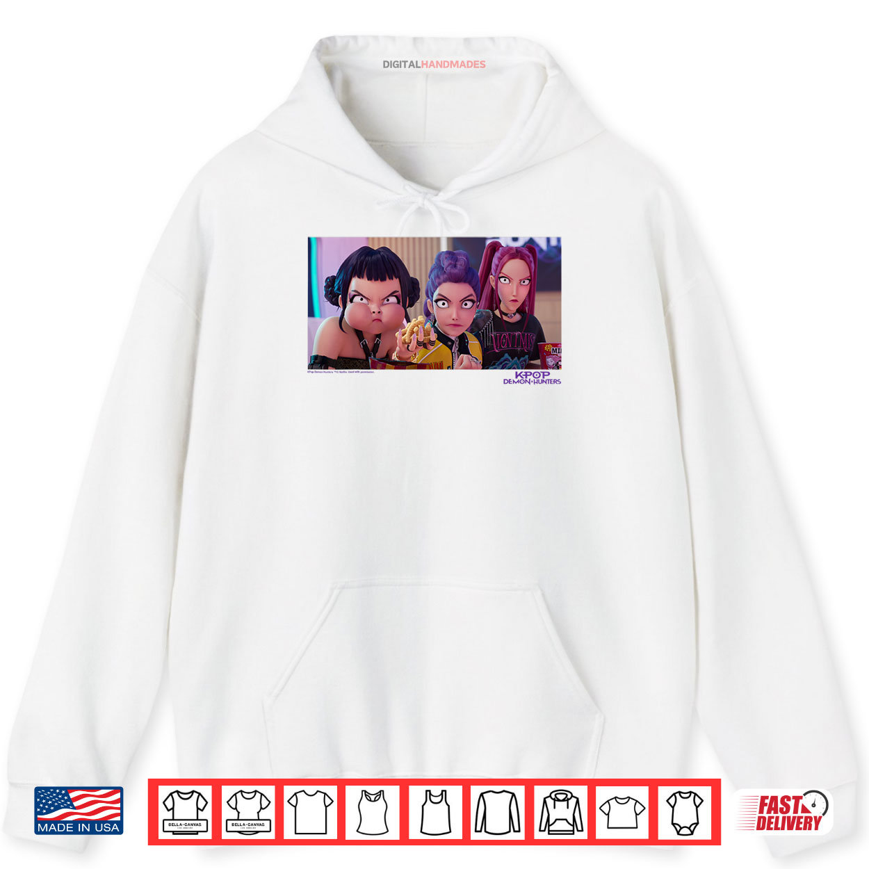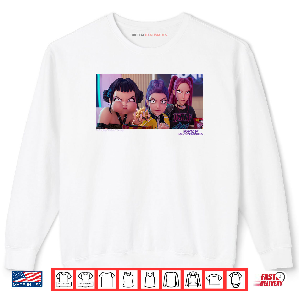 Huntrix Interrupted Snack Time Scene Shirt, Huntrix Shirt, Interrupted Snack Time Shirt, Anime Shirt, K-Pop Shirt, Funny Scene Shirt, Humorous Shirt, Fan Art Shirt, Cartoon Shirt, Cute Art Shirt