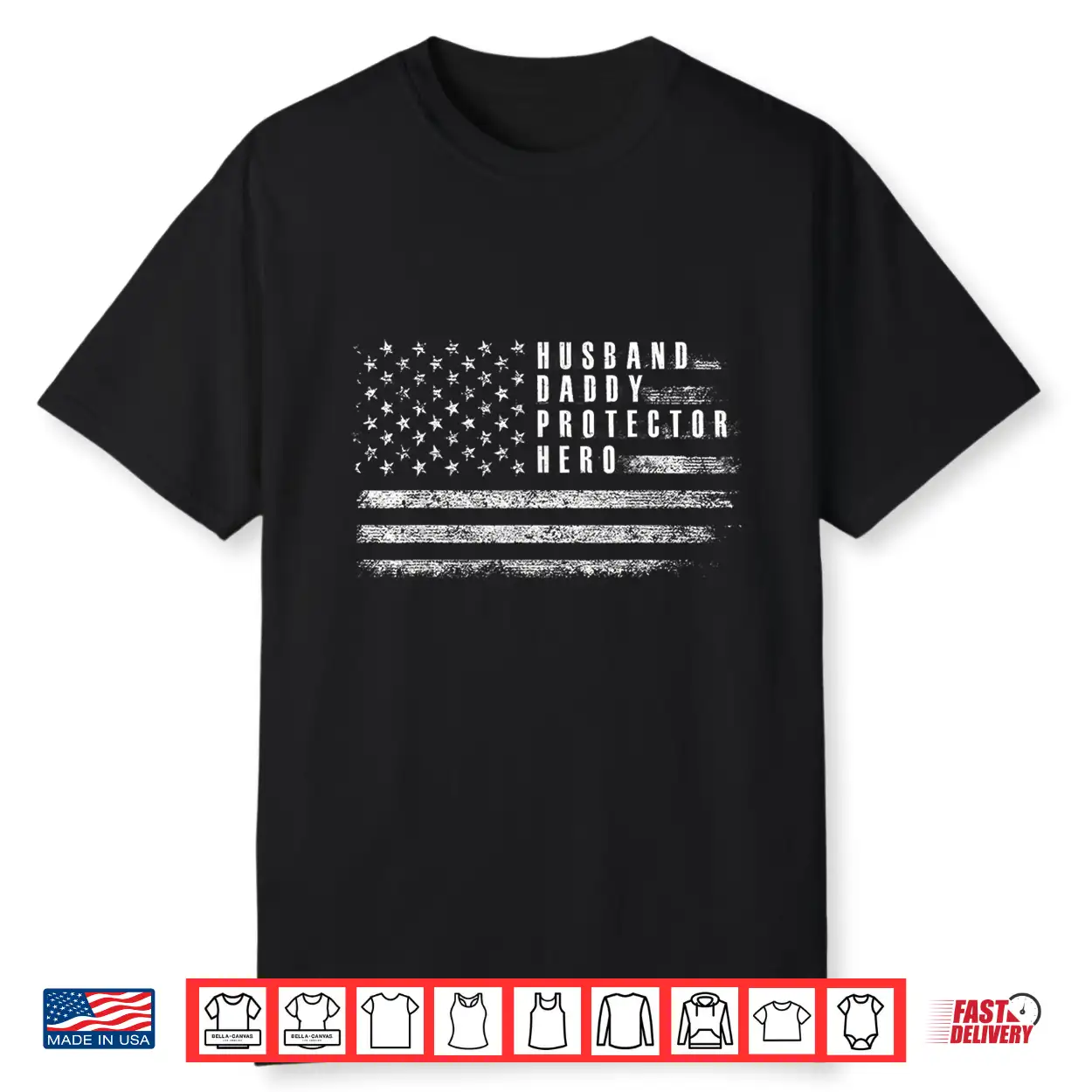 Husband Daddy Protector Hero Fathers Day American Flag Shirt