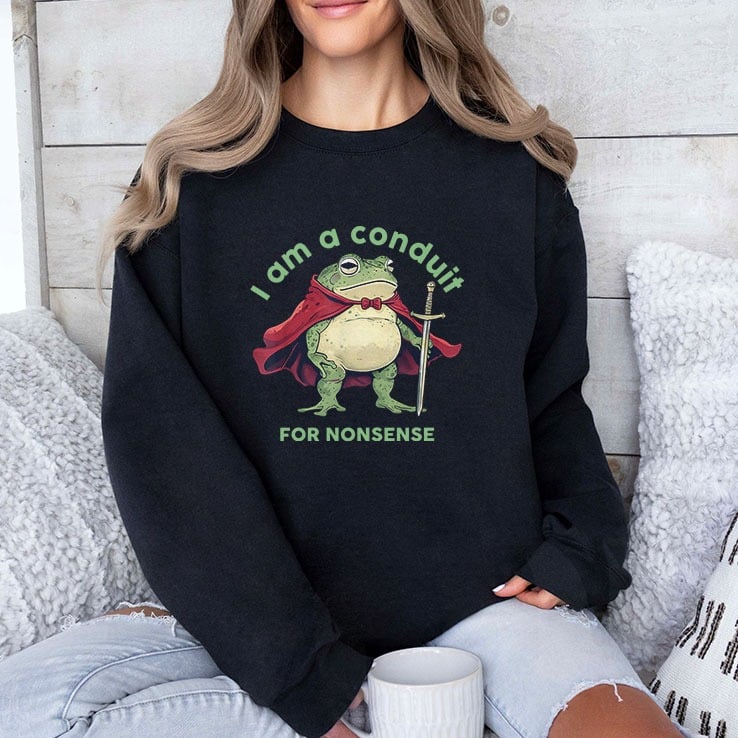 The phrase “I Am A Conduit For Nonsense” shows a joyful and funny approach to life, encouraging people to embrace absurdity and humor.
