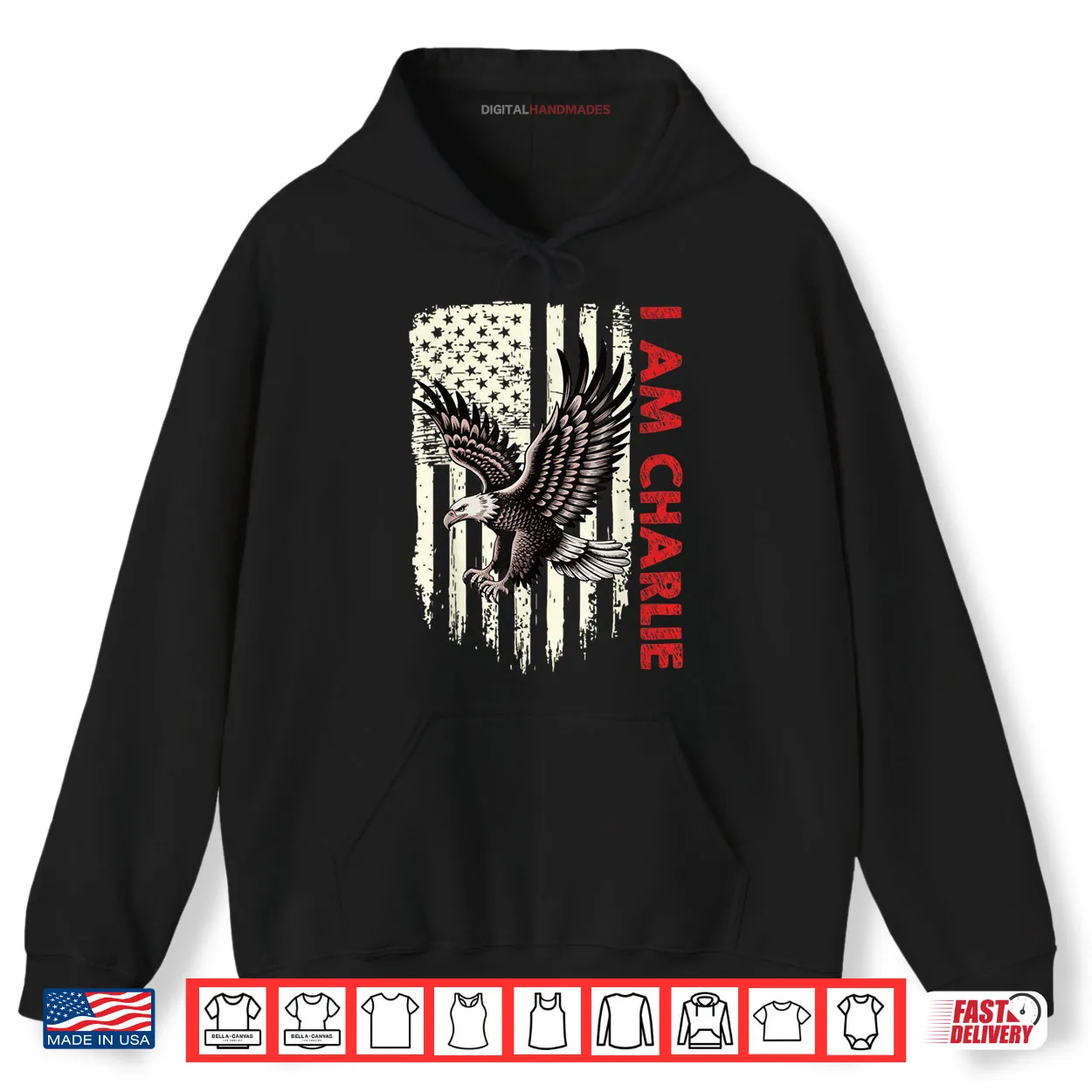 I Am Charlie, Personalized, Eagle, American Flag, Freedom, Political, Conservative, Patriotic, Quote, Statement