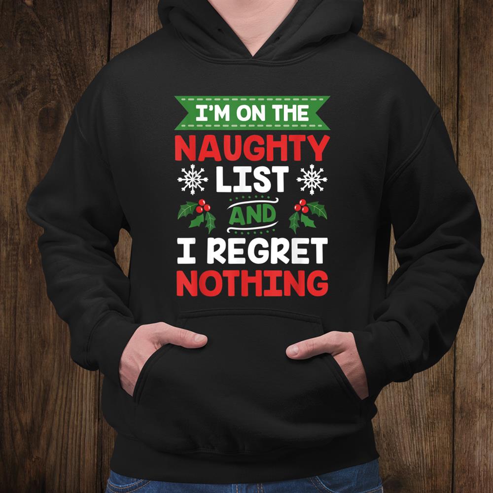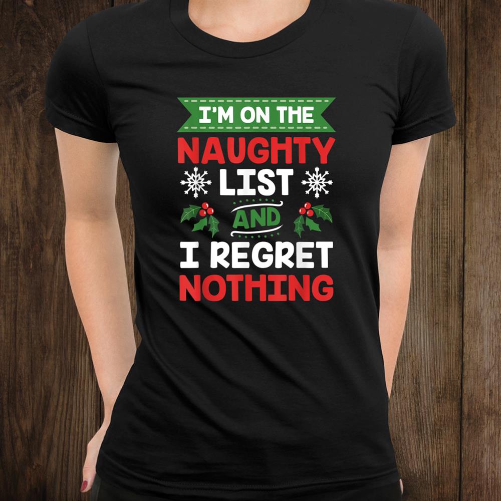 I Am On The Naughty List And I Regret Nothing Christmas Shirt, hoodie, sweatshirt, long sleeve and ladies T-shirt