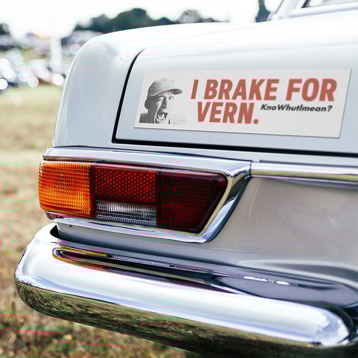 I Brake For VERN Knowhutlmean Car Magnet is a humorous reference to Ernest P. Worrell, a fictional comedic character created and portrayed by actor Jim Varney. Learn more about the car magnet below!