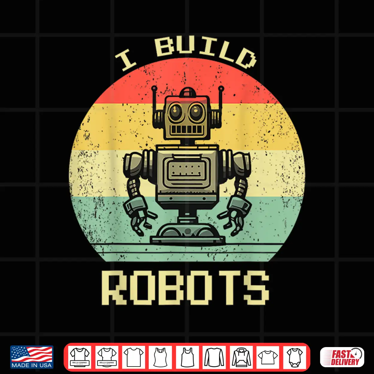 Retro Vintage, Future, I Build Robots, Graphic, Nostalgia, AI, Automation, Robotics Engineer, STEM, Technical