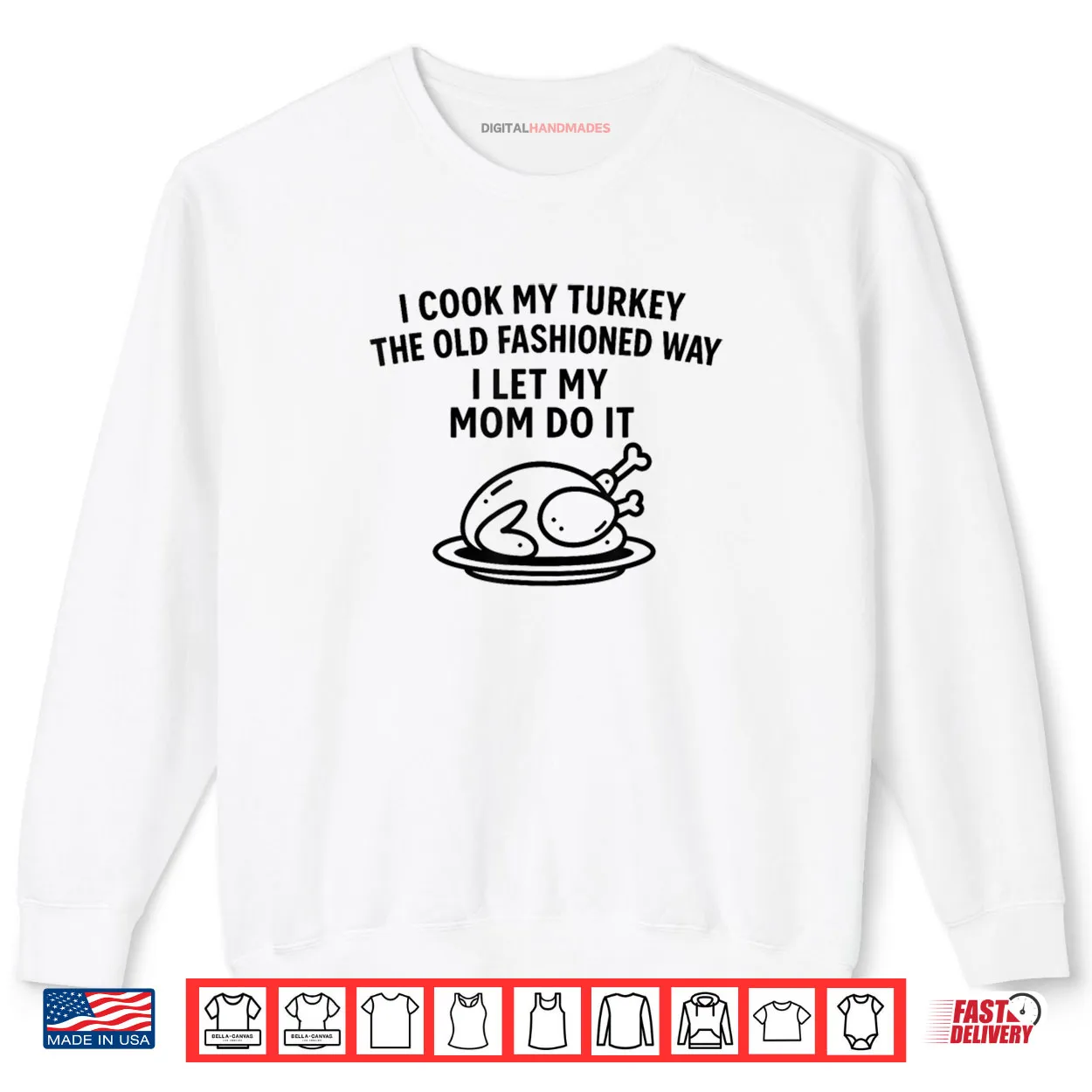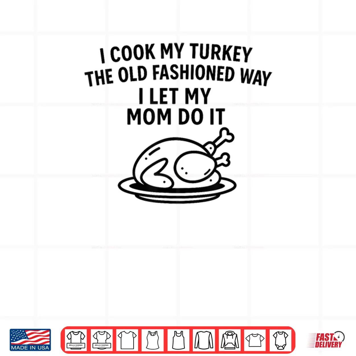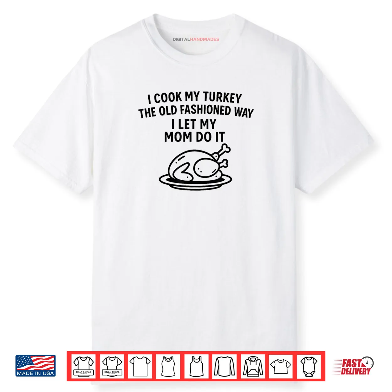 I Cook My Turkey The Old Fashioned Way I Let My Mom Do It Funny Shirt