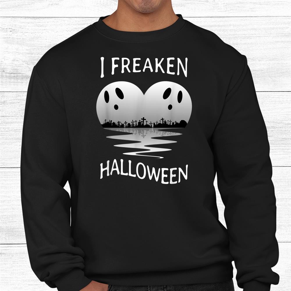 I Freaken Love Halloween Ghosts Heart Graveyard Shirt, hoodie, sweatshirt, long sleeve and ladies T-shirt