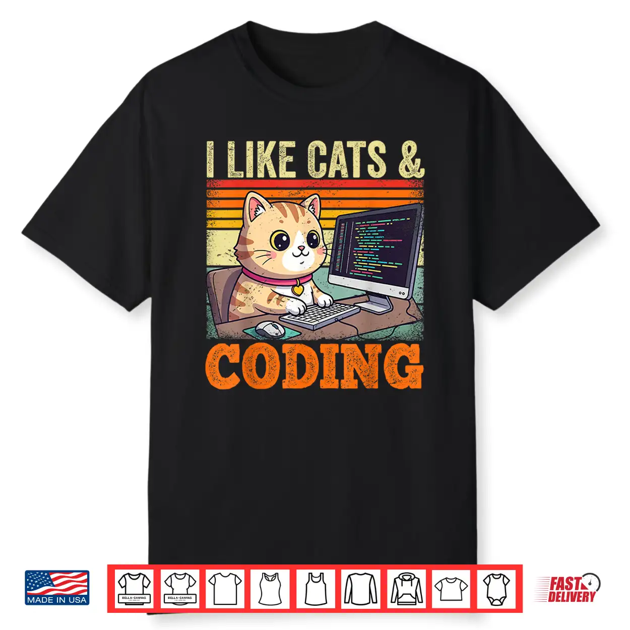 I Like Cats & Coding Men Women Cat Coder Programmer Shirt