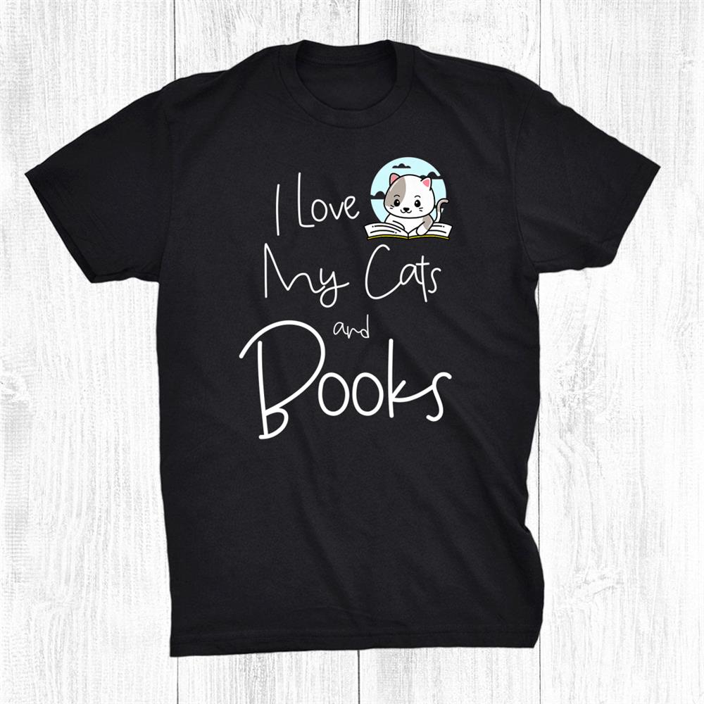 I Love My Cats And Books Cat Owner Reading Lover Funny Shirt