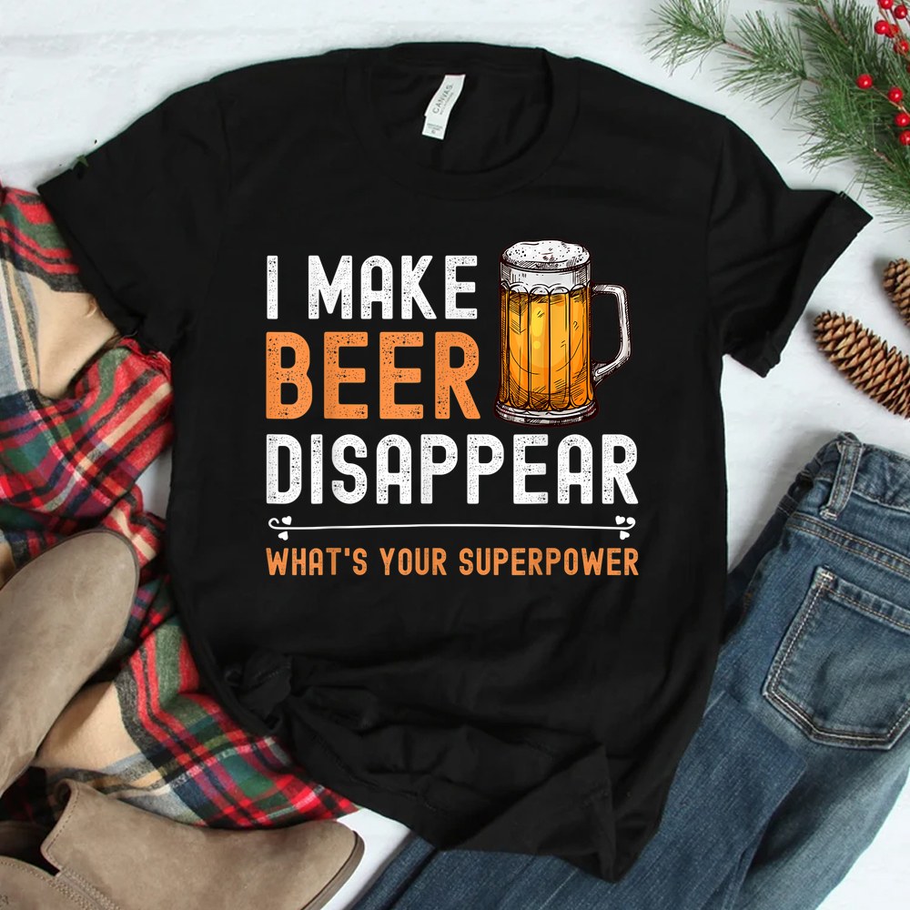 I Make Beer Disappear What’s Your Superpower Funny Drinking Shirt