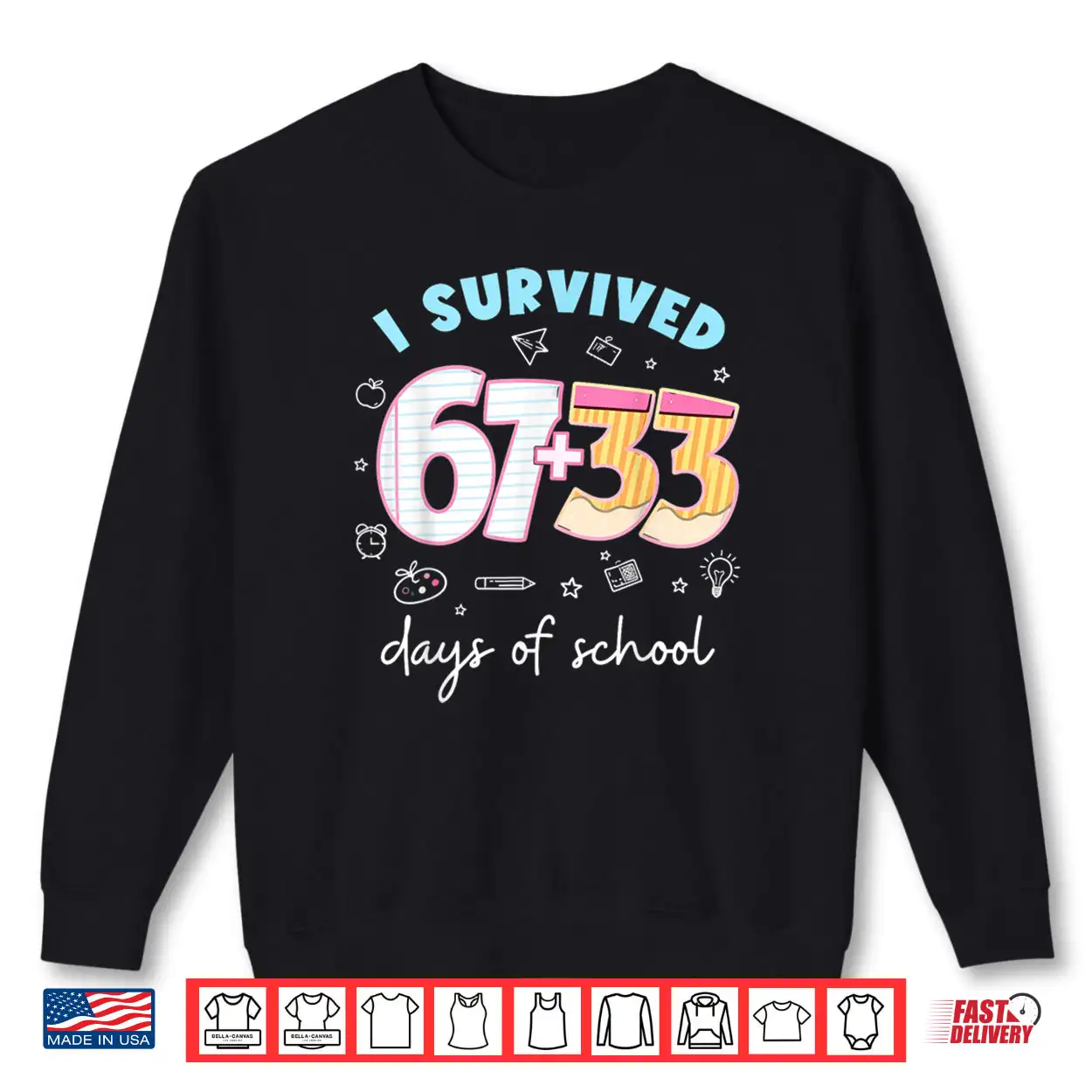 I Survived 67 33 Days of School for Teacher Kids 100th Days Shirt
