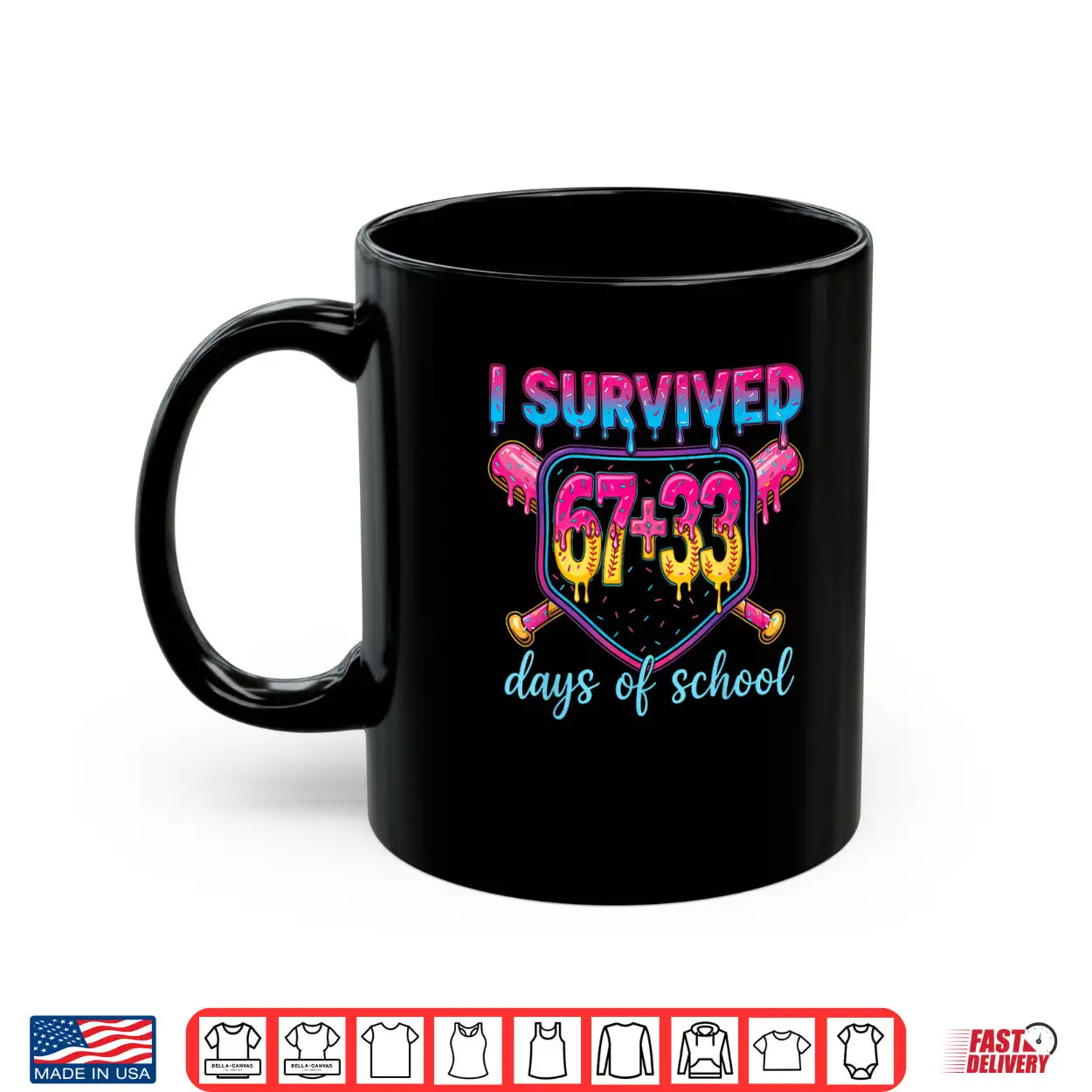 I Survived 67+33 Days of School 100 Days 6 7 Kids Boys Girls Shirt