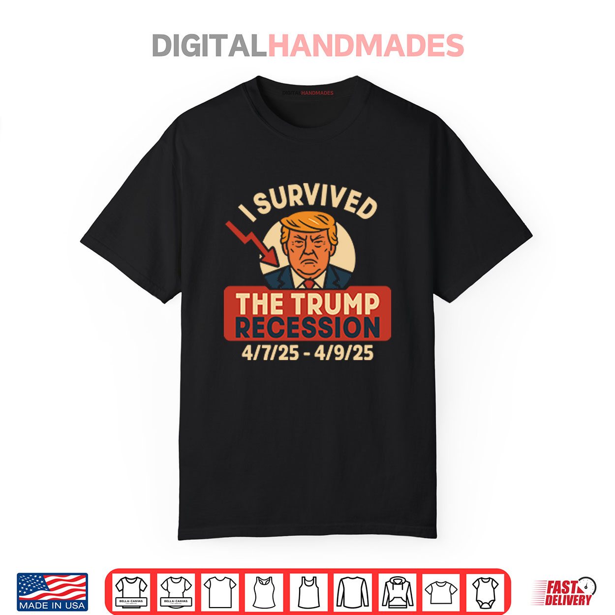 trump recession survivor tee, economic satire shirt, political humor apparel, anti-trump funny shirt, sarcastic protest tee, inflation joke shirt, social commentary clothing, recession survivor joke, bold statement shirt, political gag gift