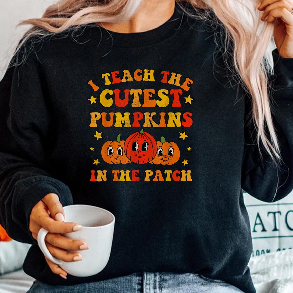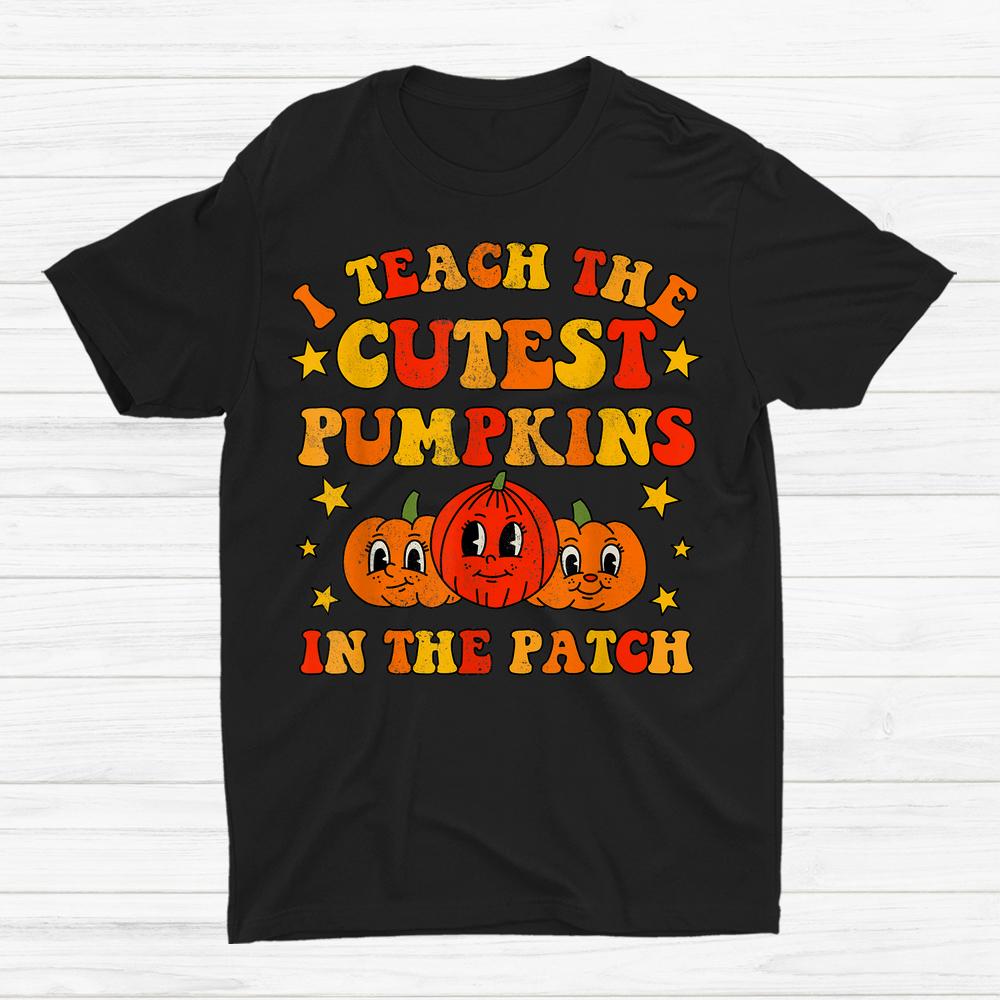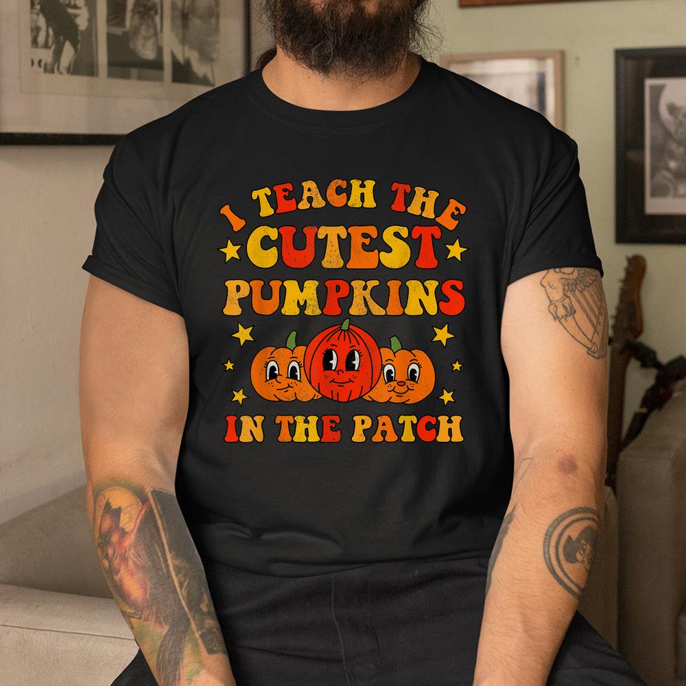 I Teach The Cutest Pumpkins Groovy Fall Autumn Halloween Shirt, hoodie, sweatshirt, long sleeve and ladies T-shirt