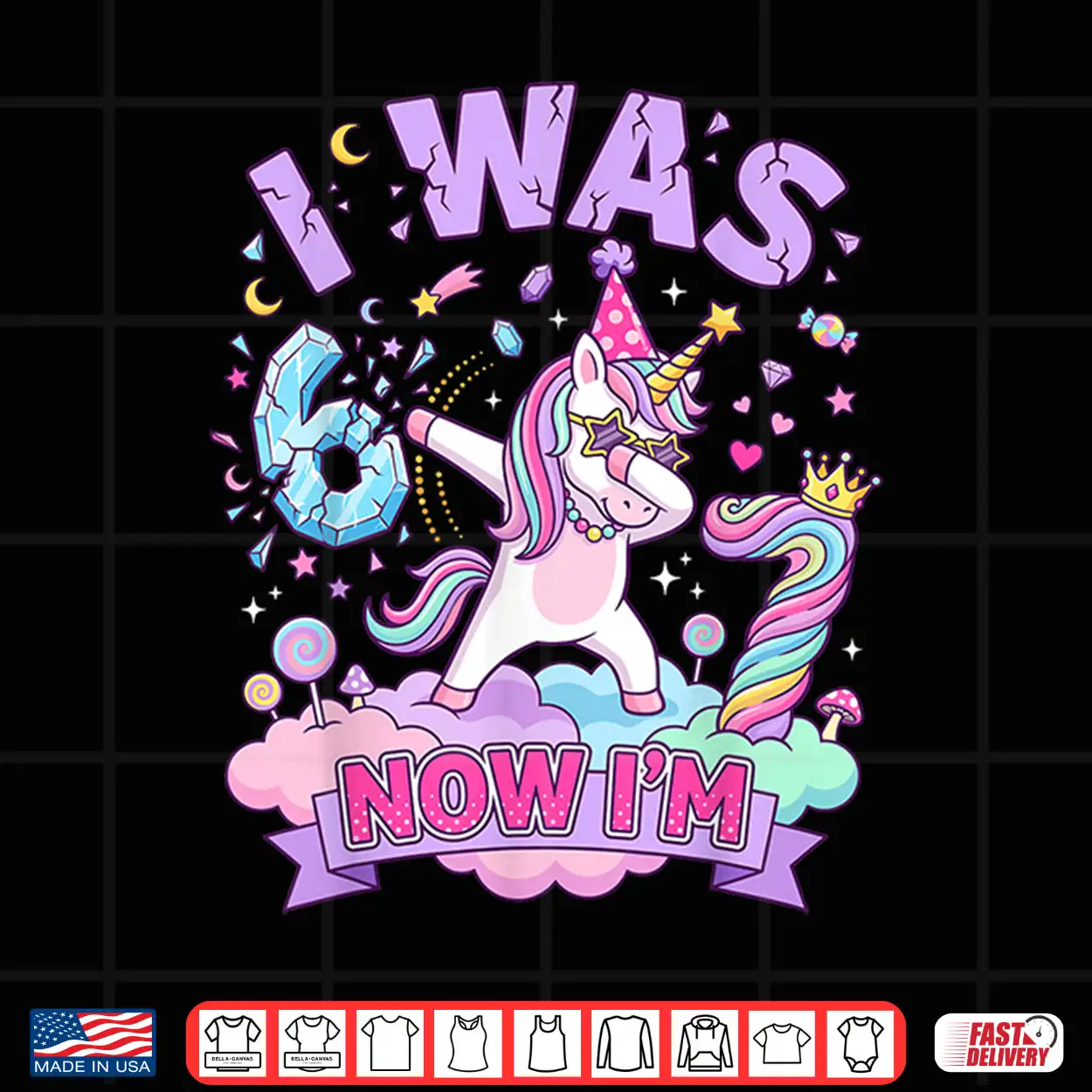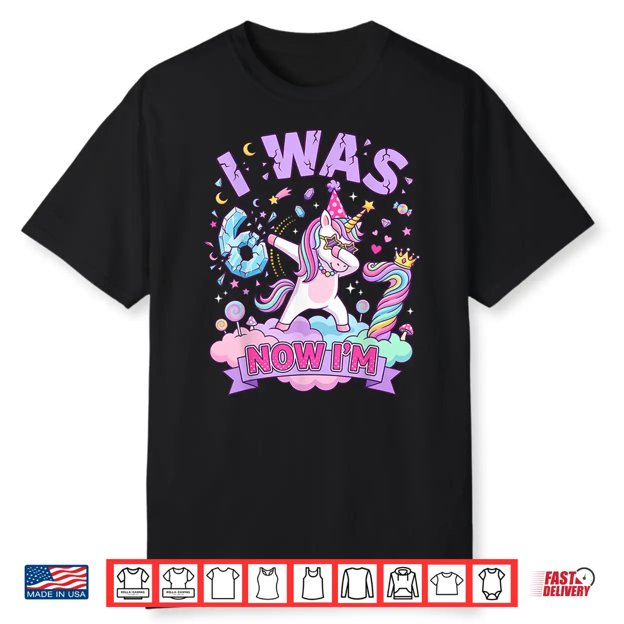 I Was 6 Now I’M 7 Unicorn Girl 6 7 Birthday Shirt