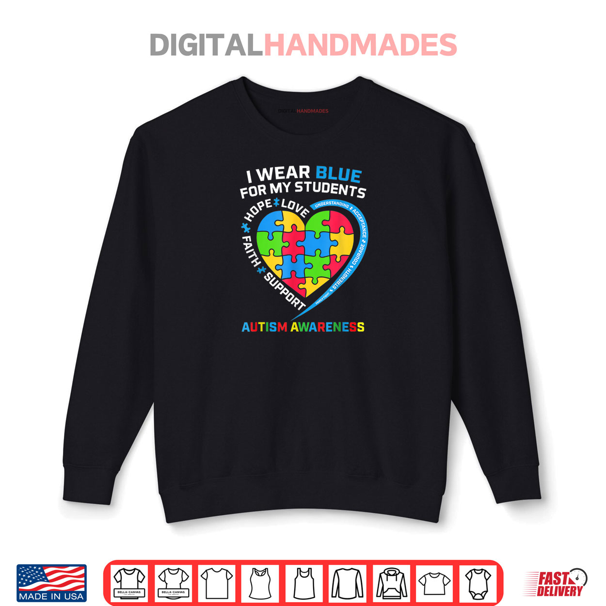 I Wear Blue For My Students Autism Awareness Teachers Shirt