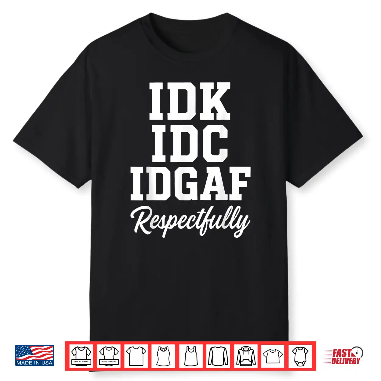 Idk Idc Idgaf Respectfully Funny Saying Shirt