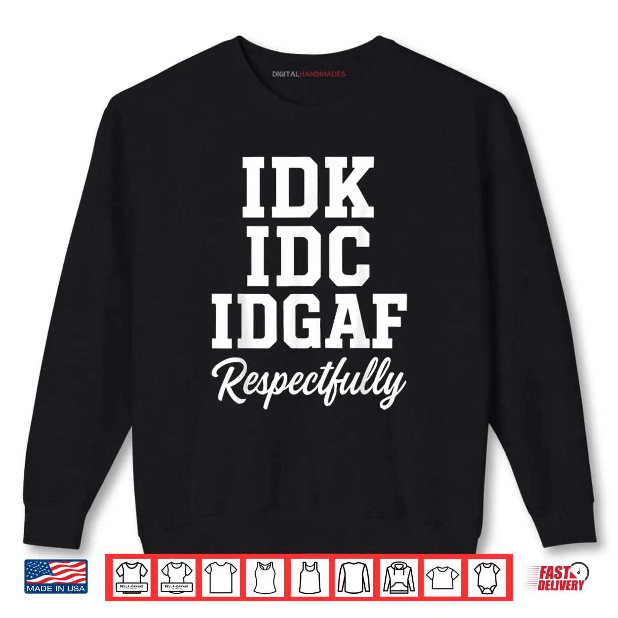 IDK IDC IDGAF Respectfully Funny Saying Shirt