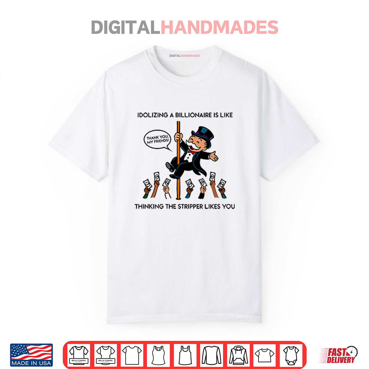 idolizing billionaire stripper quote, funny social graphic tee, spring quirky apparel, bold satire design, playful casual spring fashion, lighthearted commentary tee, springtime funny style, humorous billionaire shirt, funny statement apparel, cute spring wear