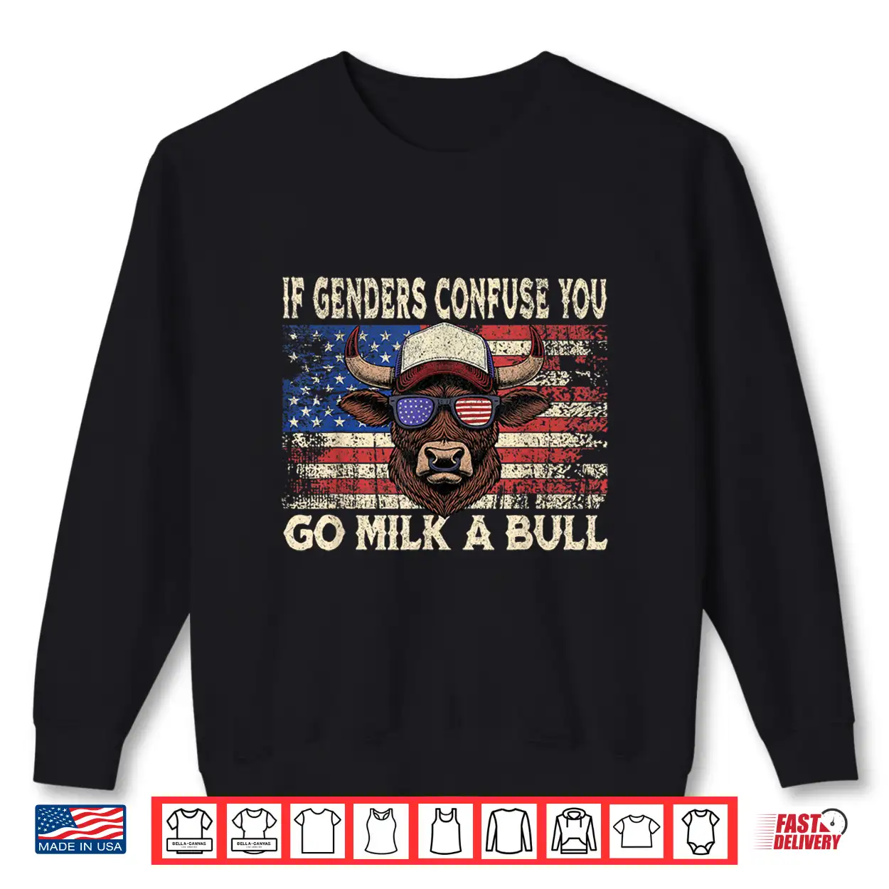 If Genders Confuse You Go Milk A Bull Usa Flag American Shirt