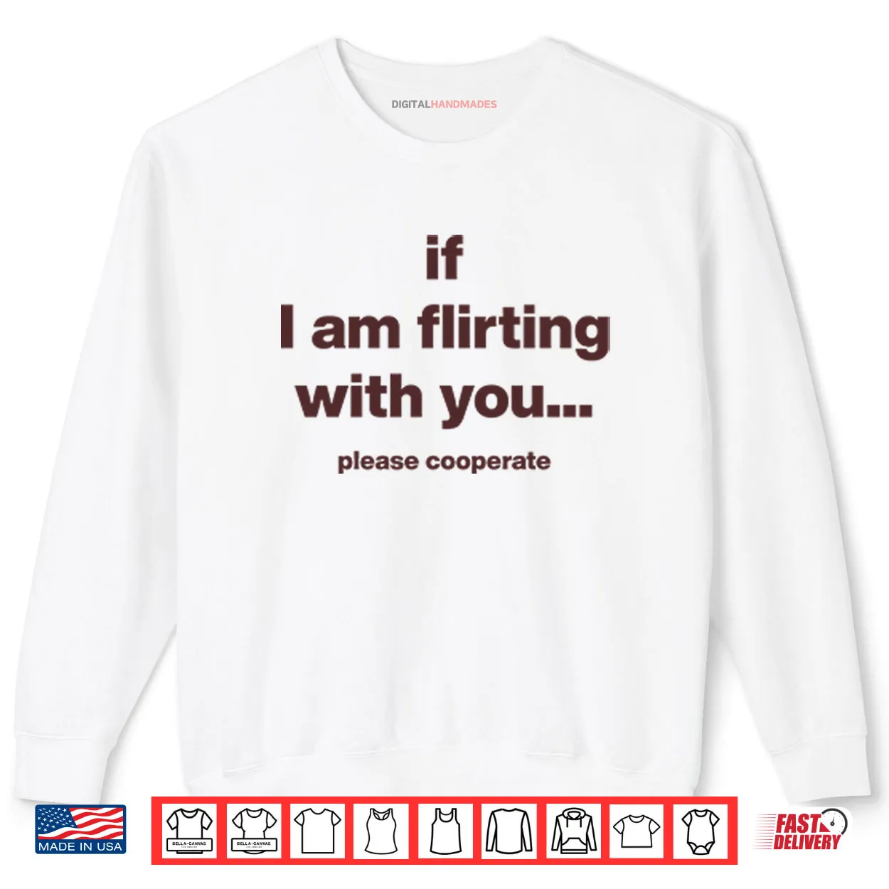 flirting with you, please cooperate, funny romance, dating humor, witty quote, sarcastic, relationship, confidence, social, shirt