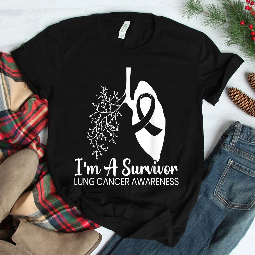 I’m A Survivor Lung Cancer Awareness Month White Ribbon Shirt