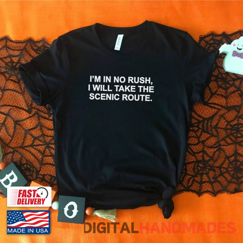 Have a look at the detailed information about I’m In No Rush I Will Take The Scenic Route Shirt below!