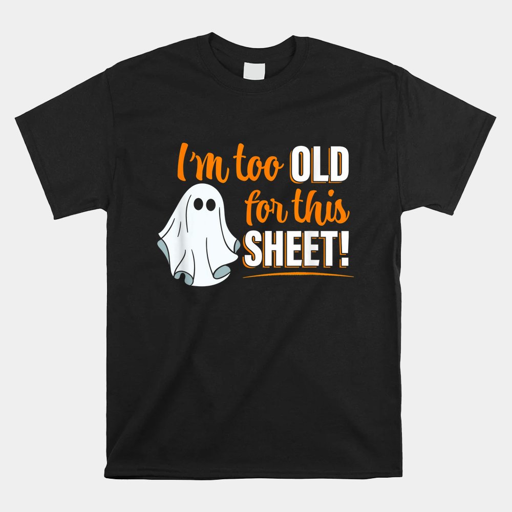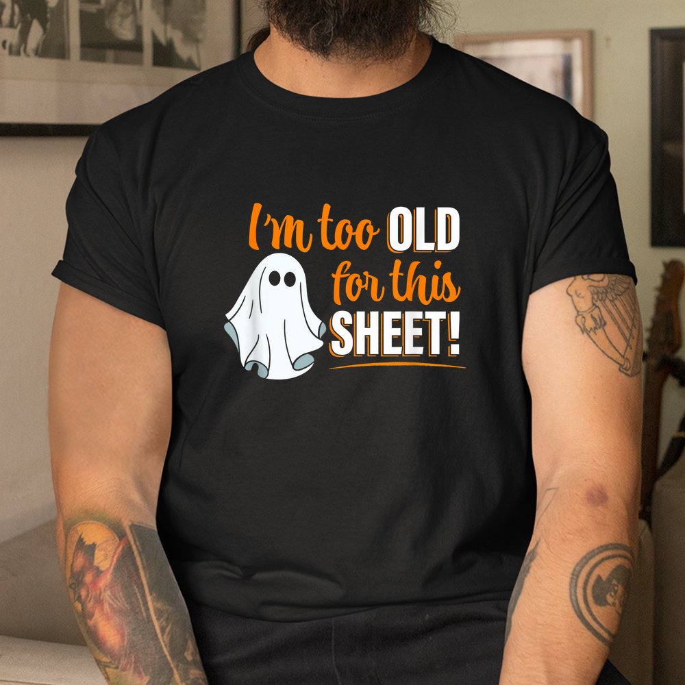 I’m Too Old For This Sheet Funny Ghost Pun Halloween Shirt, hoodie, sweatshirt, long sleeve and ladies T-shirt