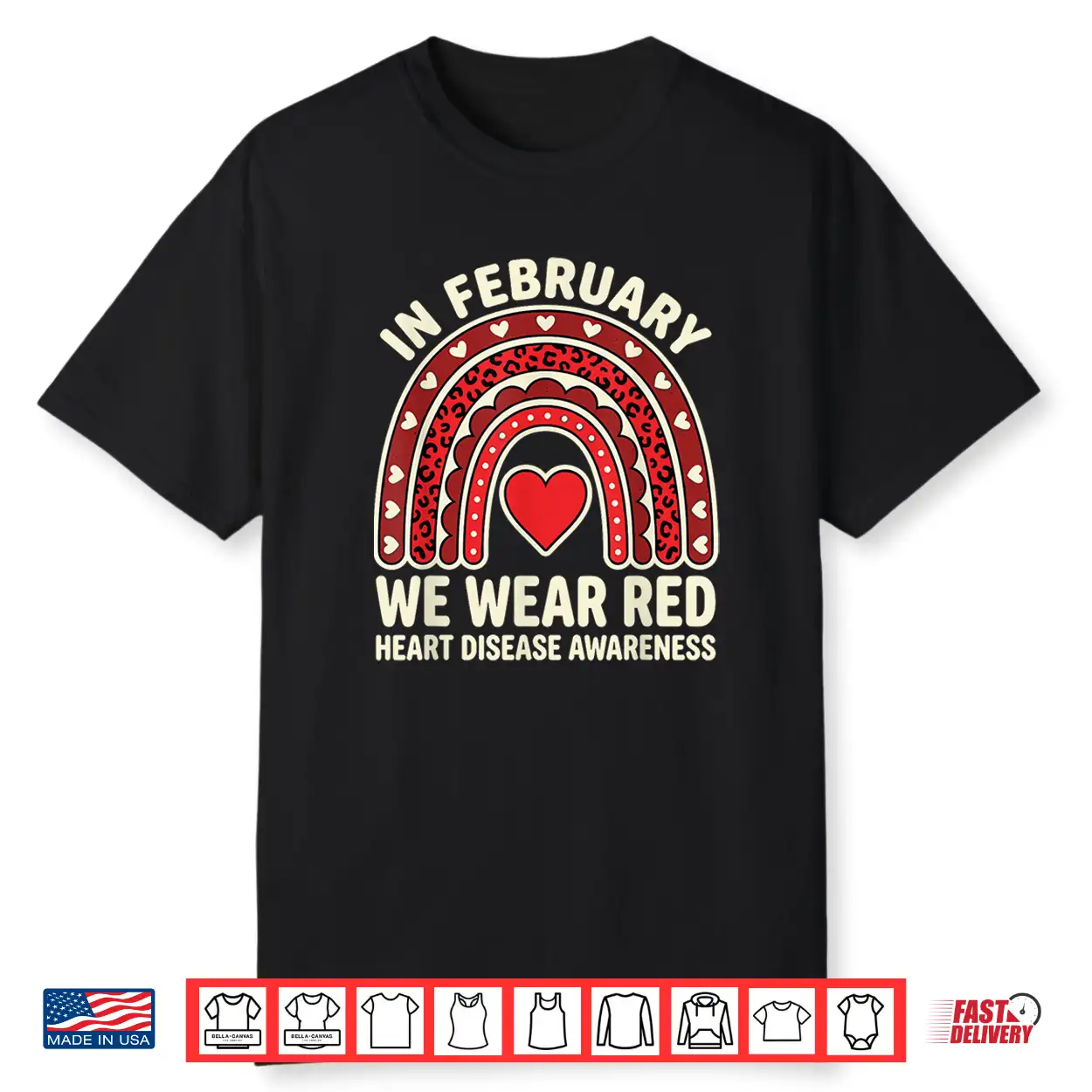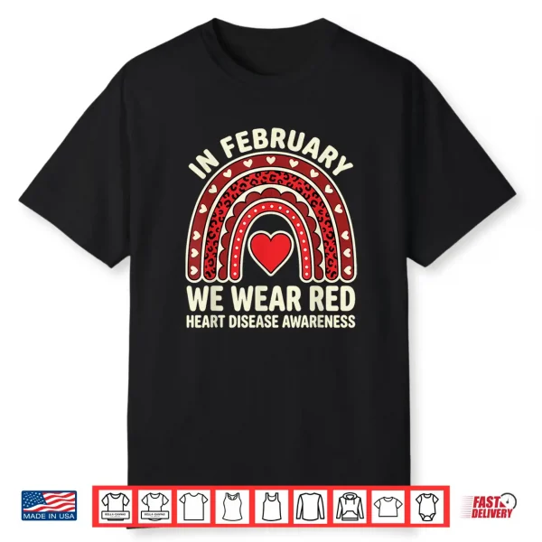 In February We Wear Red Heart Disease Month Awareness Quote Shirt