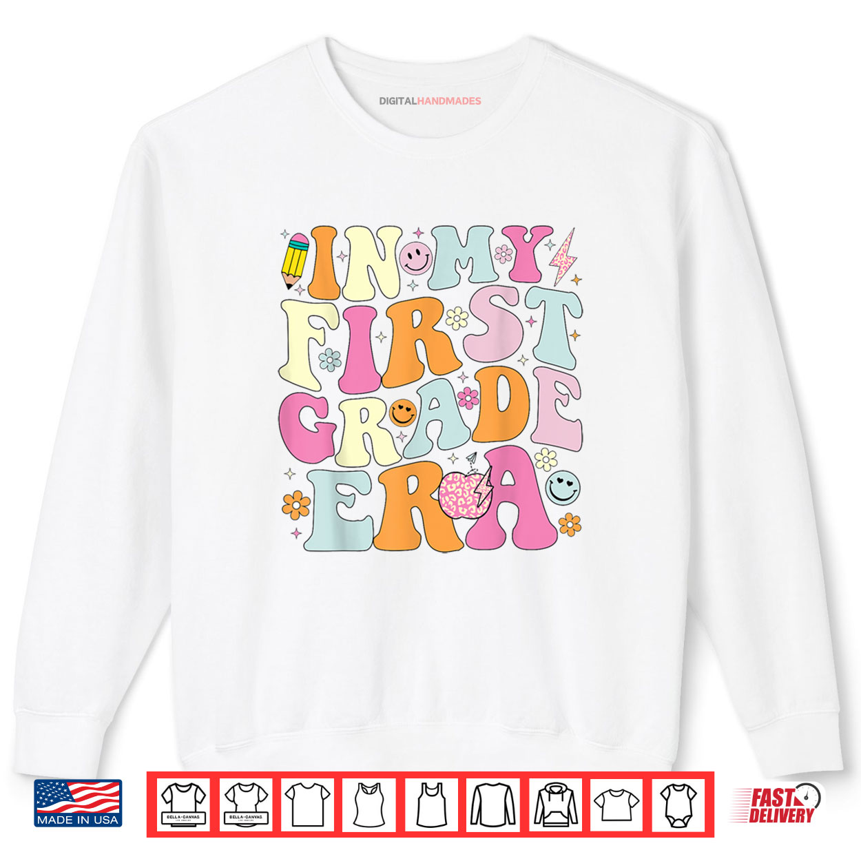 In My First Grade Era 1st Grade Girl Teacher Back to School Shirt, In My First Grade Era Girl Tee Shirt, 1st Grade Teacher Back To School Fun Shirt, Groovy Retro Style Student Teacher Shirt, Awesome First Grade Girl Gift Proud Shirt, Teaching Or Learning In 1st Grade Shirt, Nostalgic School Year For Girls Fan Shirt, Cool First Grade Crew Apparel Lady Shirt, Trendy Era Fashion For School Chic Shirt, Funky First Grade Girl Power Sweet Shirt