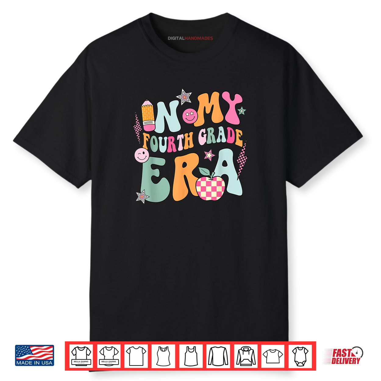 In My Fourth Grade Era Back To School Retro Groovy 4th Grade Shirt, In My Fourth Grade Era Retro Tee Shirt, Back To School Groovy 4th Grade Fun Shirt, Groovy Teacher Student Style Proud Shirt, Awesome Fourth Grade Squad Gift Fan Shirt, Teaching Or Learning In 4th Grade Shirt, Nostalgic School Year Retro Vibes Lady Shirt, Cool Fourth Grade Crew Apparel Chic Shirt, Trendy Era Fashion For School Sweet Shirt, Funky Fourth Grade Groovy Life Cute Shirt