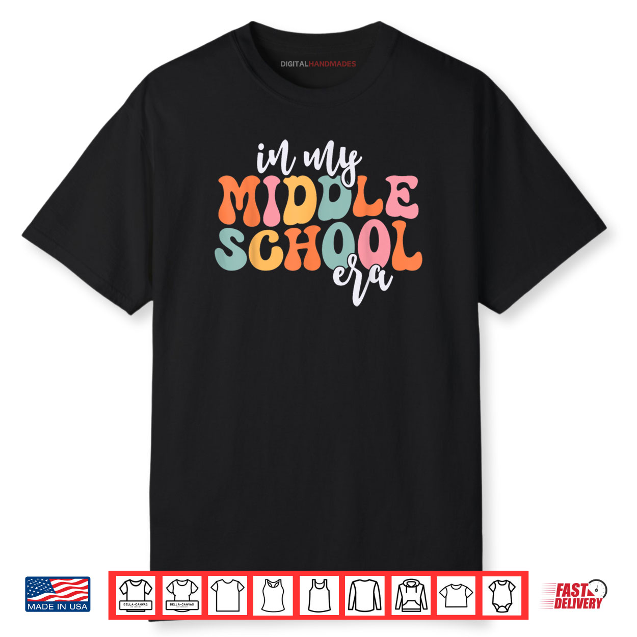 In My Middle School Era Back To School Outfits For Teacher Shirt, In My Middle School Era Teacher Tee Shirt, Back To School Outfits Educator Style Shirt, Groovy Middle School Teacher Fun Proud Shirt, Awesome Teacher Wardrobe Gift Fan Shirt, Teaching Middle School In My Era Shirt, Nostalgic School Year For Teachers Lady Shirt, Cool Middle School Crew Apparel Chic Shirt, Trendy Era Fashion For Educators Sweet Shirt, Funky Middle School Vibes Cute Shirt