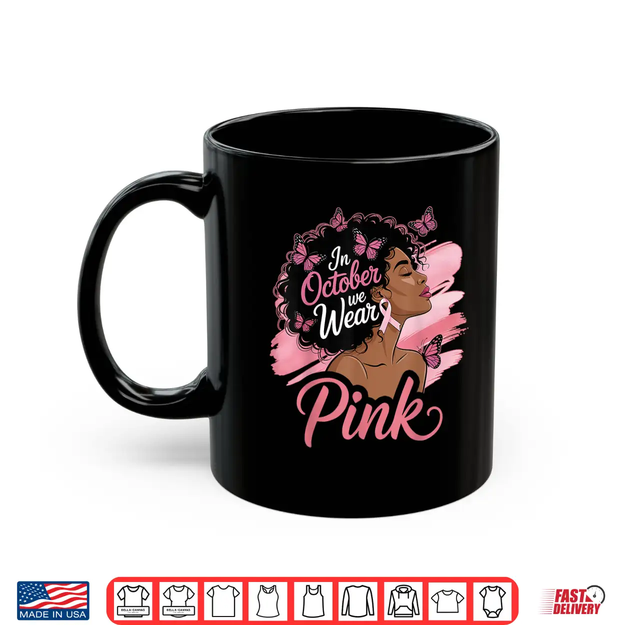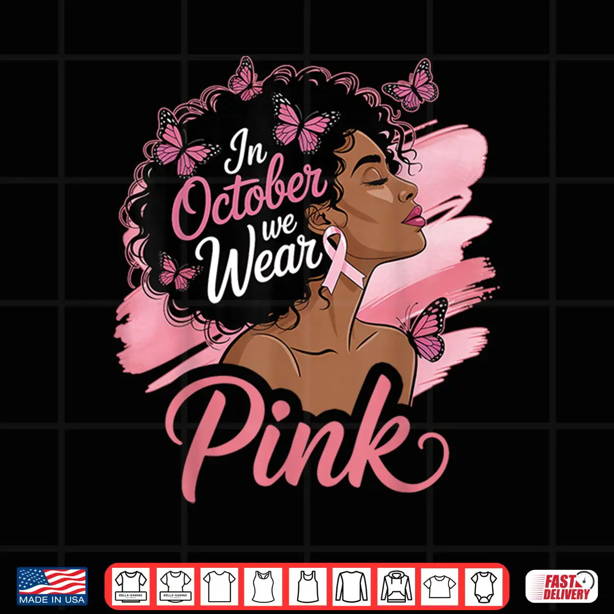 In October We Wear Pink Breast Cancer Awareness Black Shirt