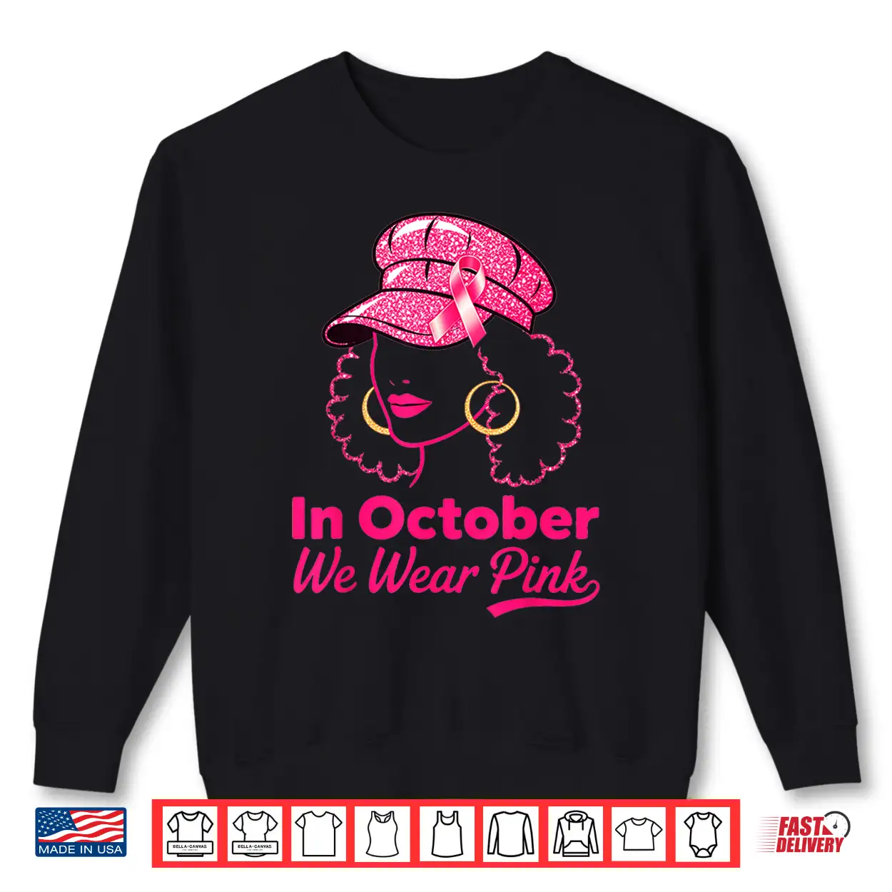 In October We Wear Pink Breast Cancer Awareness Black Women Art Shirt