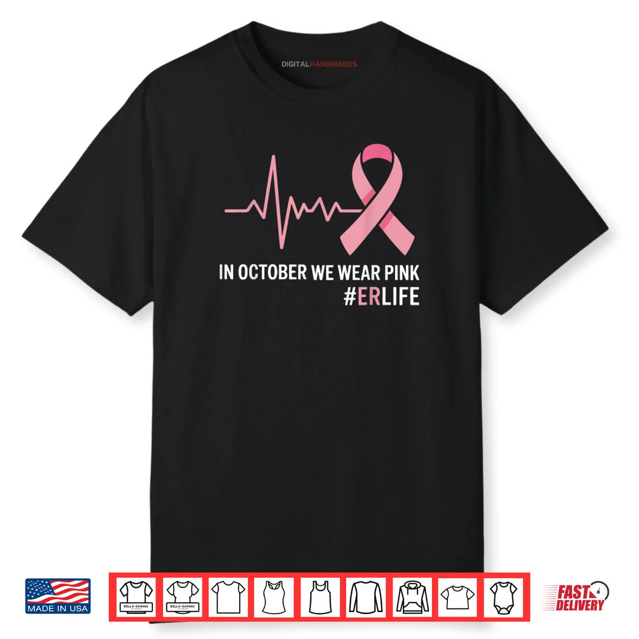 in October We Wear Pink Breast Cancer Awareness ER Nurse Shirt