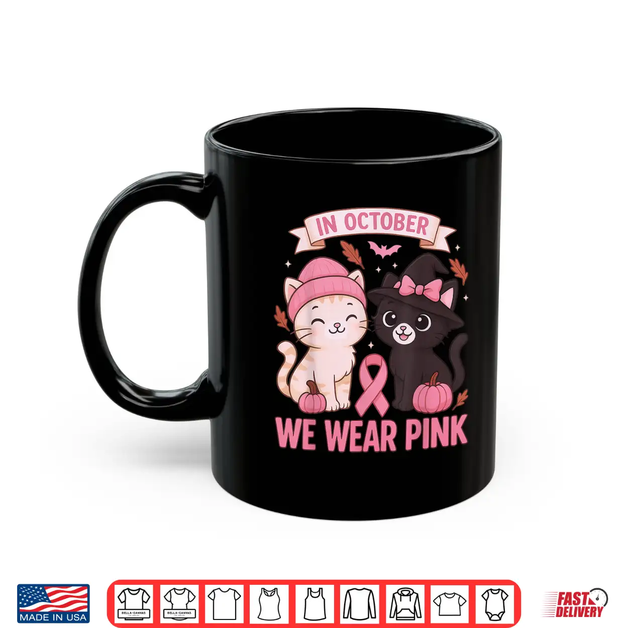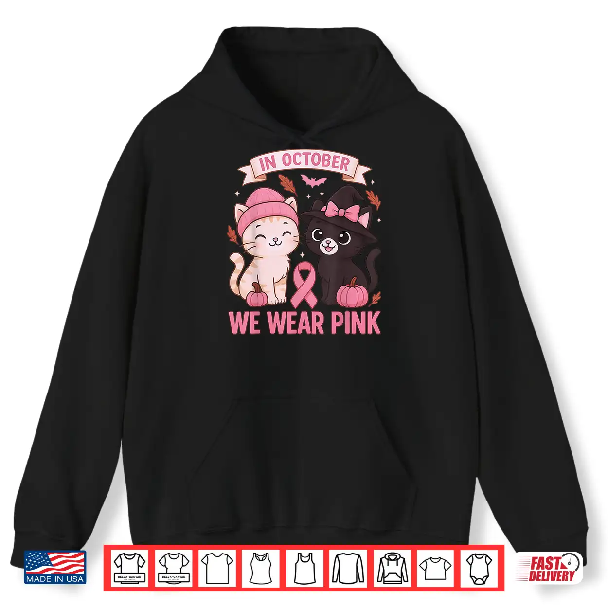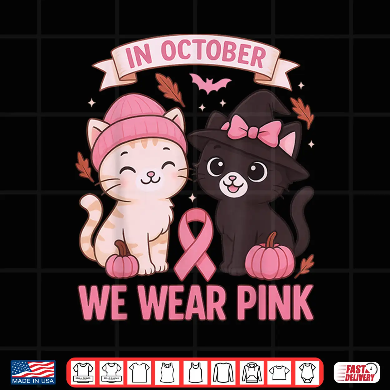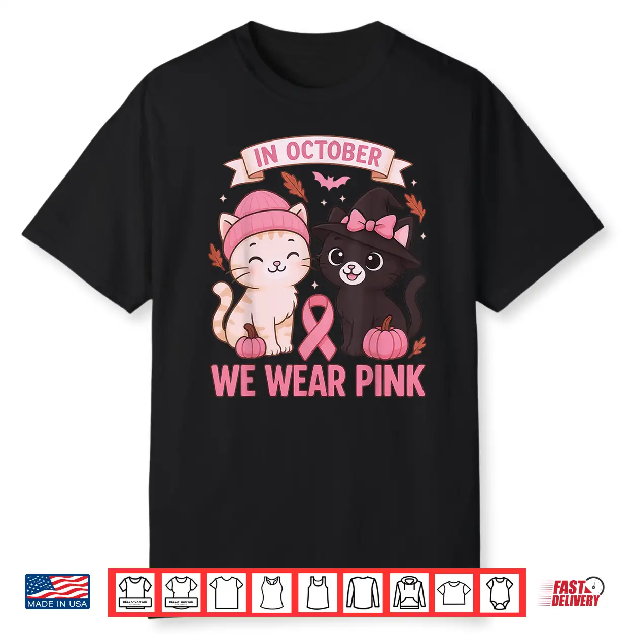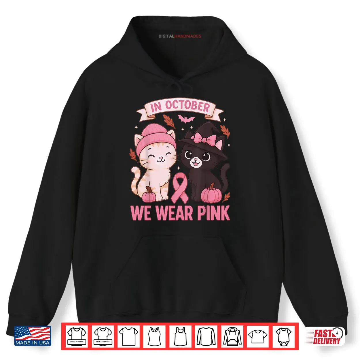 In October We Wear Pink Cute Cat Breast Cancer Awareness Shirt