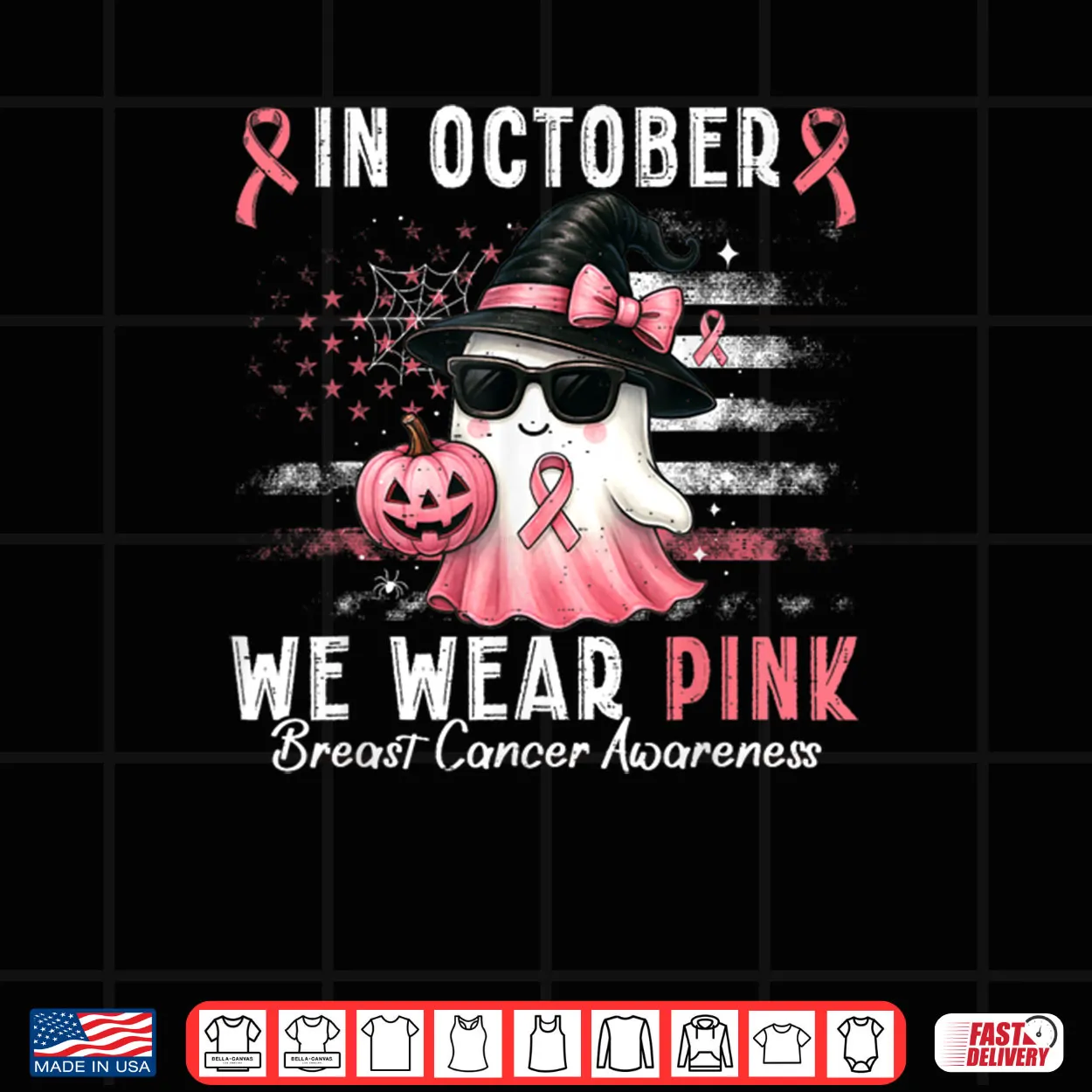 in October We Wear Pink Shirt Ghost Breast Cancer Awareness Shirt