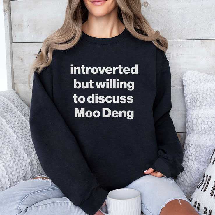 Have a look at the detailed information about the Introverted But Willing To Discuss Moo Deng Shirt below!