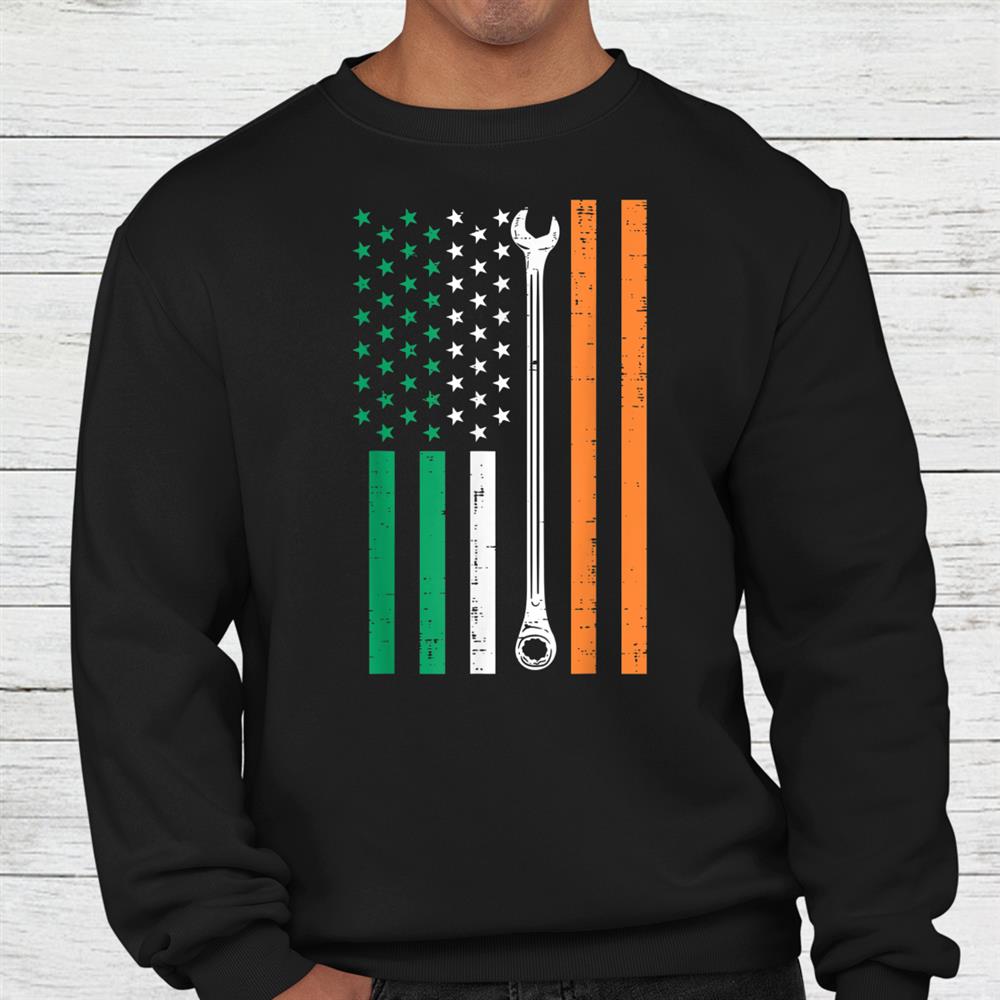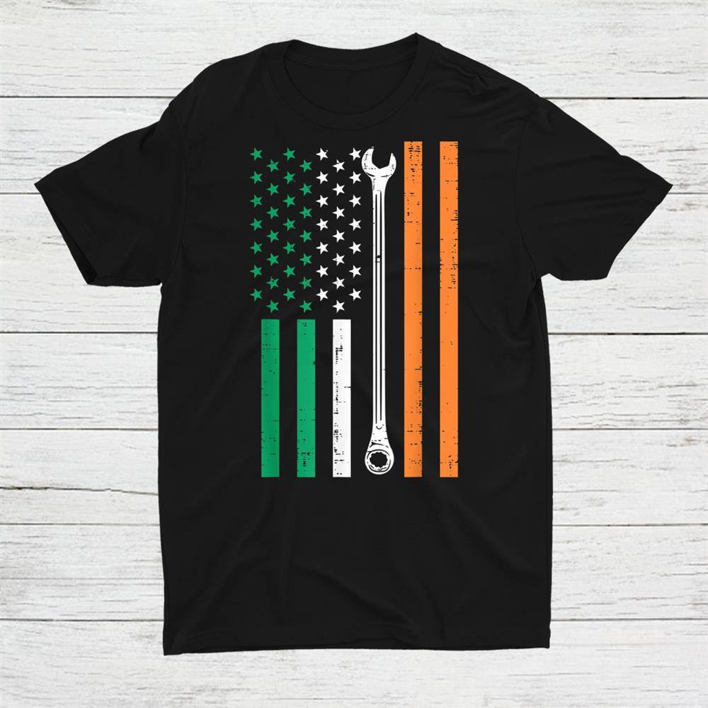 Irish Us Flag Wrench St Patricks Day Patriotic Mechanic Shirt