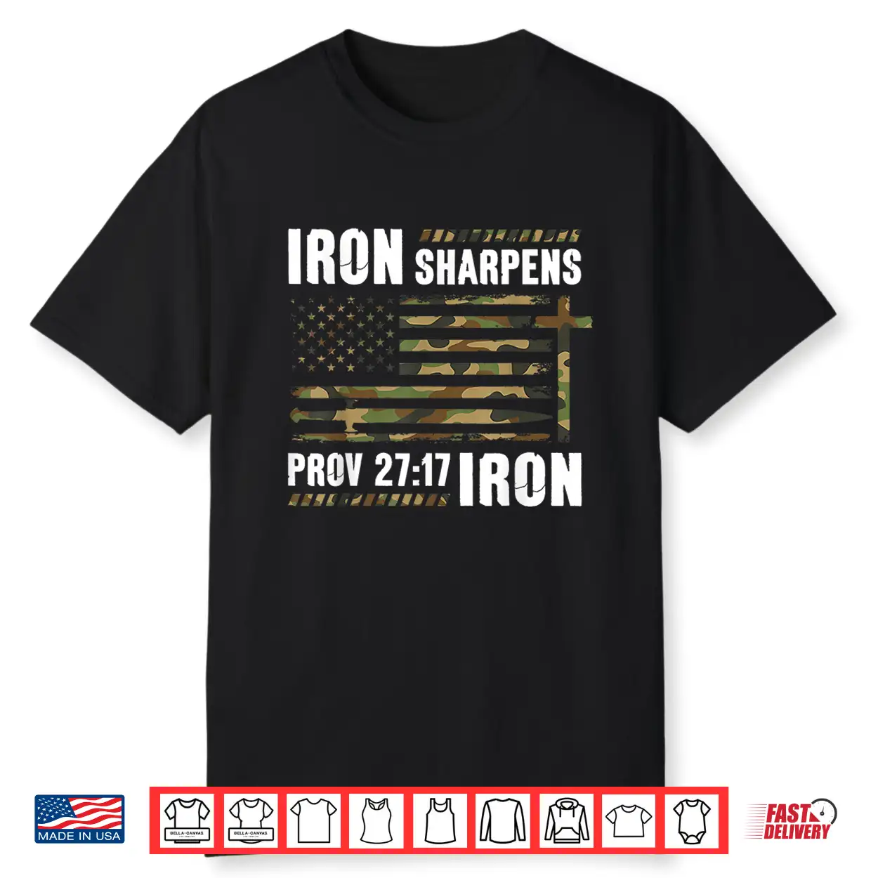 Iron Sharpens Iron Bible Camo Us Flag Christian Gym Workout Shirt