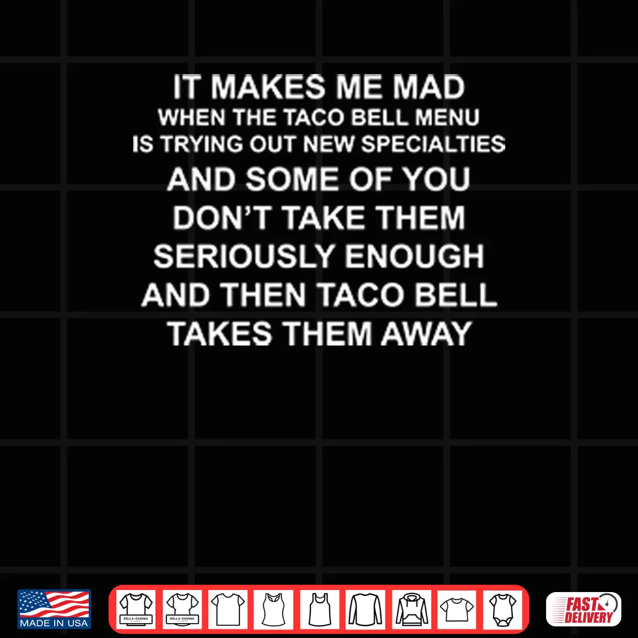 Taco Bell, Menu, Specialties, Funny, Sarcastic, Witty, Humor, Foodie, Quote, Statement