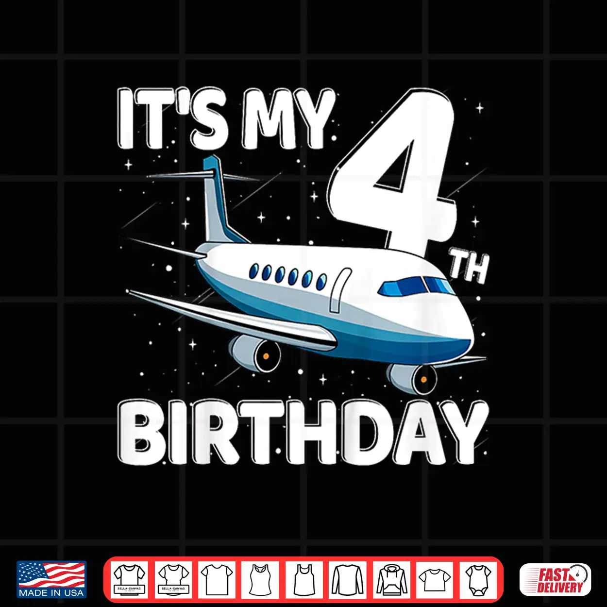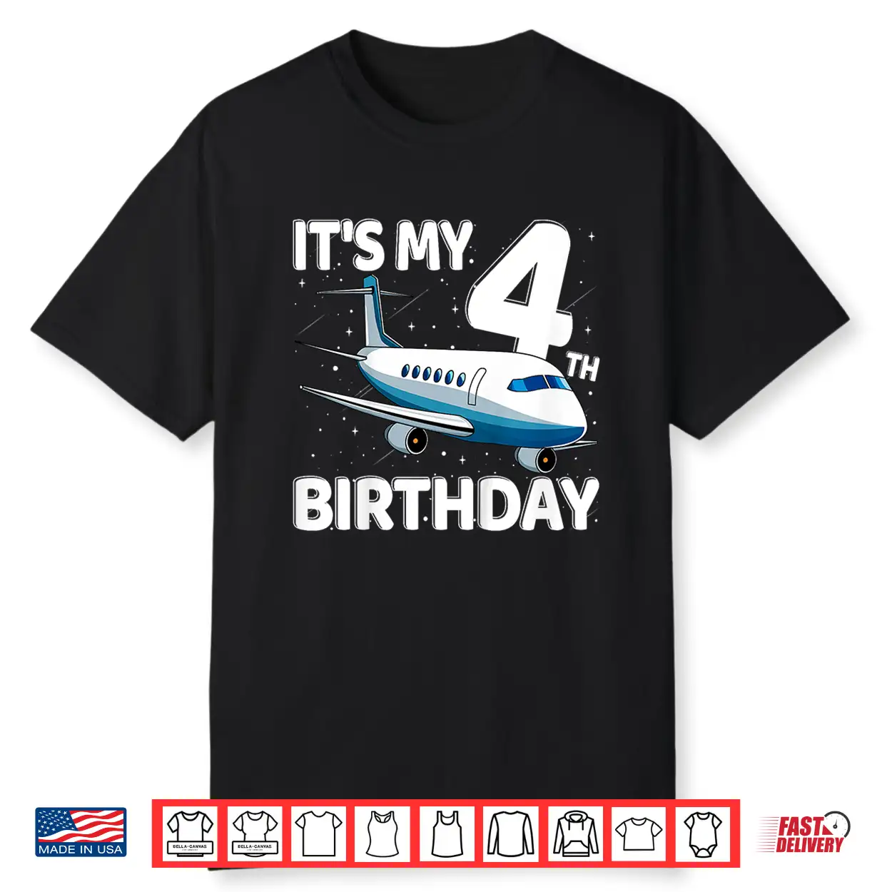 Its My 4Th Birthday Airplane 4 Year Old Birthday Shirt