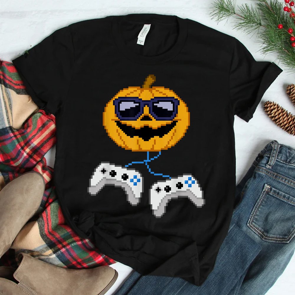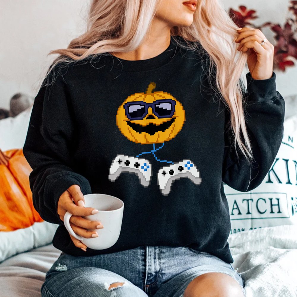Jack O Lantern Pixelated Gaming Gamer Halloween Shirt, hoodie, sweatshirt, long sleeve and ladies T-shirt