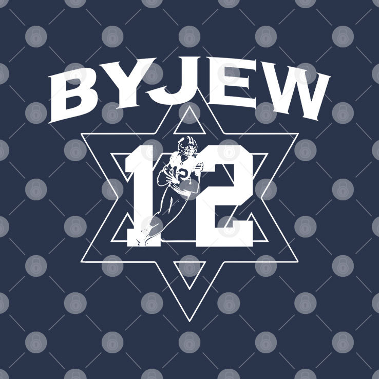 Jake Retzlaff, the Jewish quarterback for Brigham Young University (BYU), earned the nickname “BY-Jew”, a play on the school’s initials (BYU) and his Jewish heritage. The “12” on the shirt refers to both his jersey number and the 12 tribes of Israel, symbolizing Jewish unity and strength.