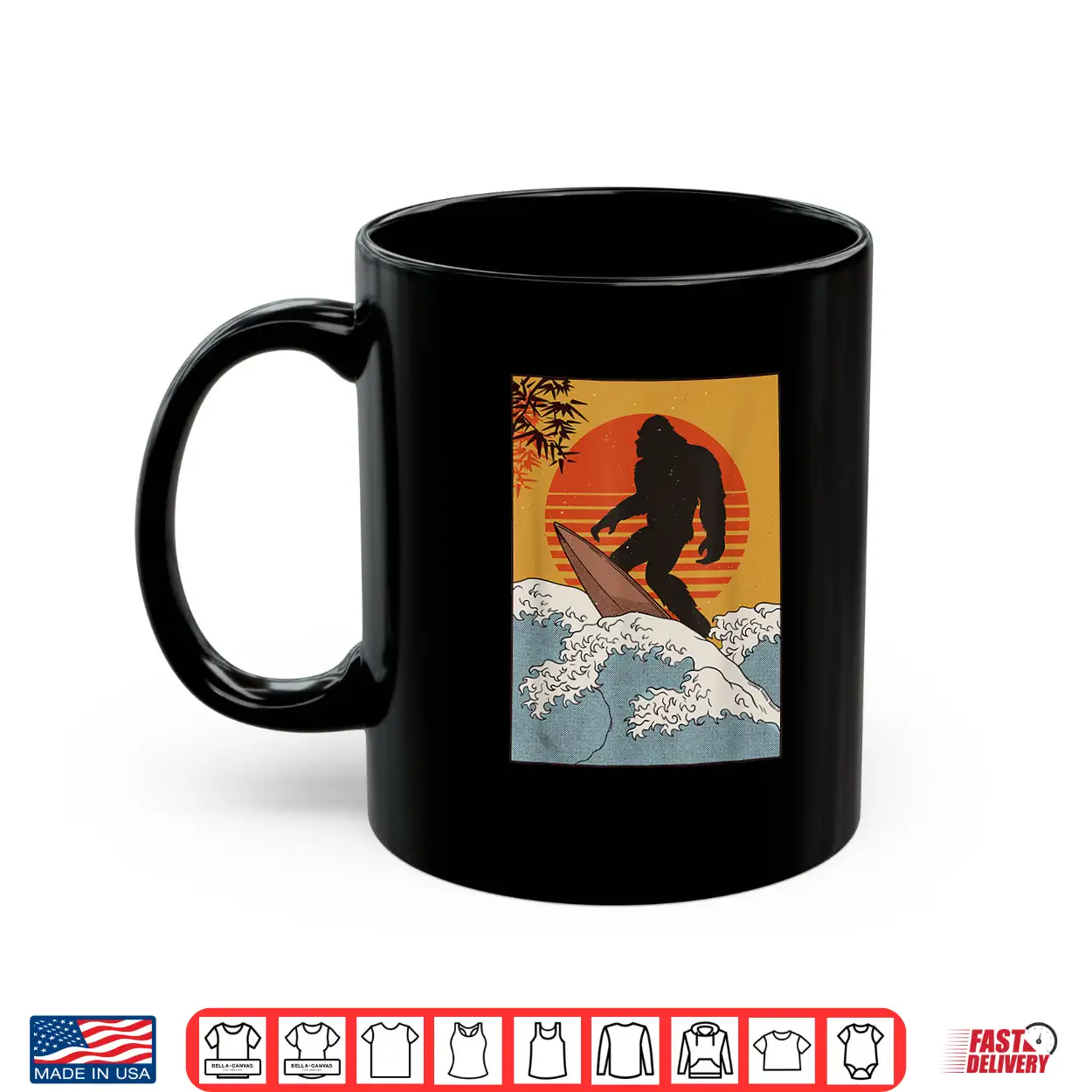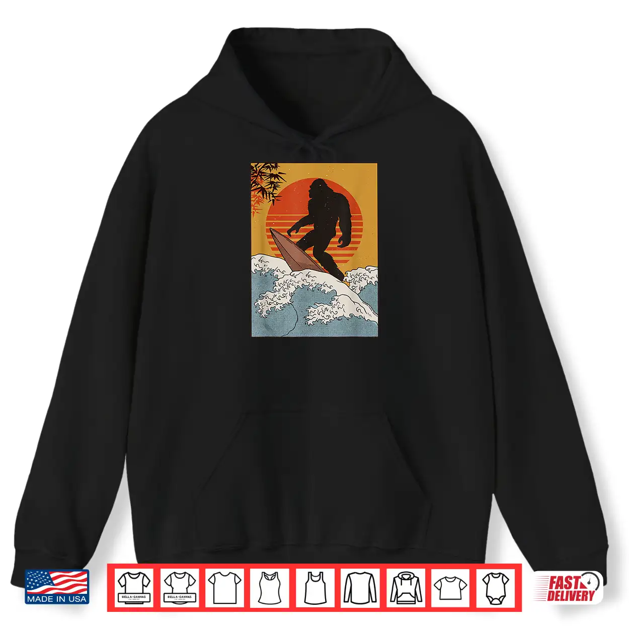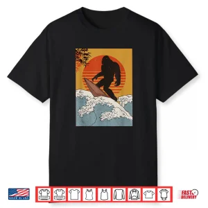 Japanese Vintage Kanagawa Art Surfing Bigfoot Hanging Ten Shirt