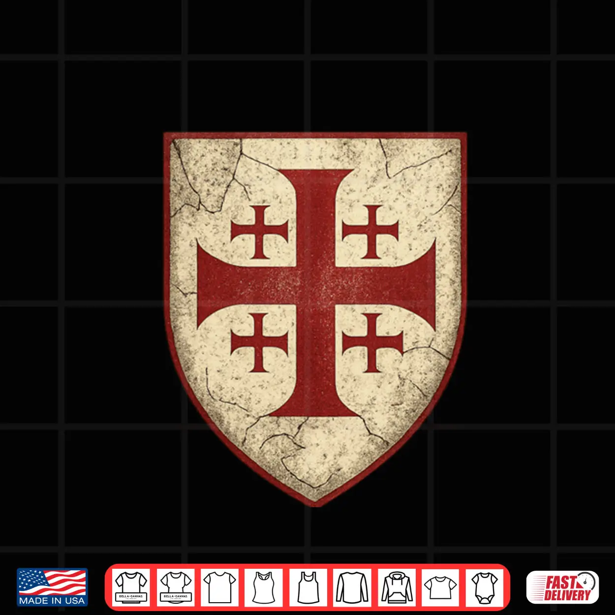 jerusalem cross, emblem, religious, christian, heritage, faith, spiritual, historical, crusader, symbol, shirt