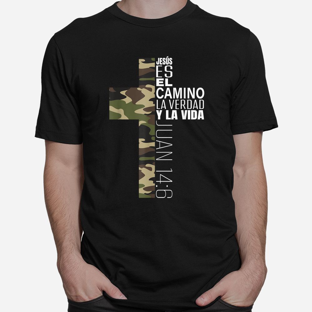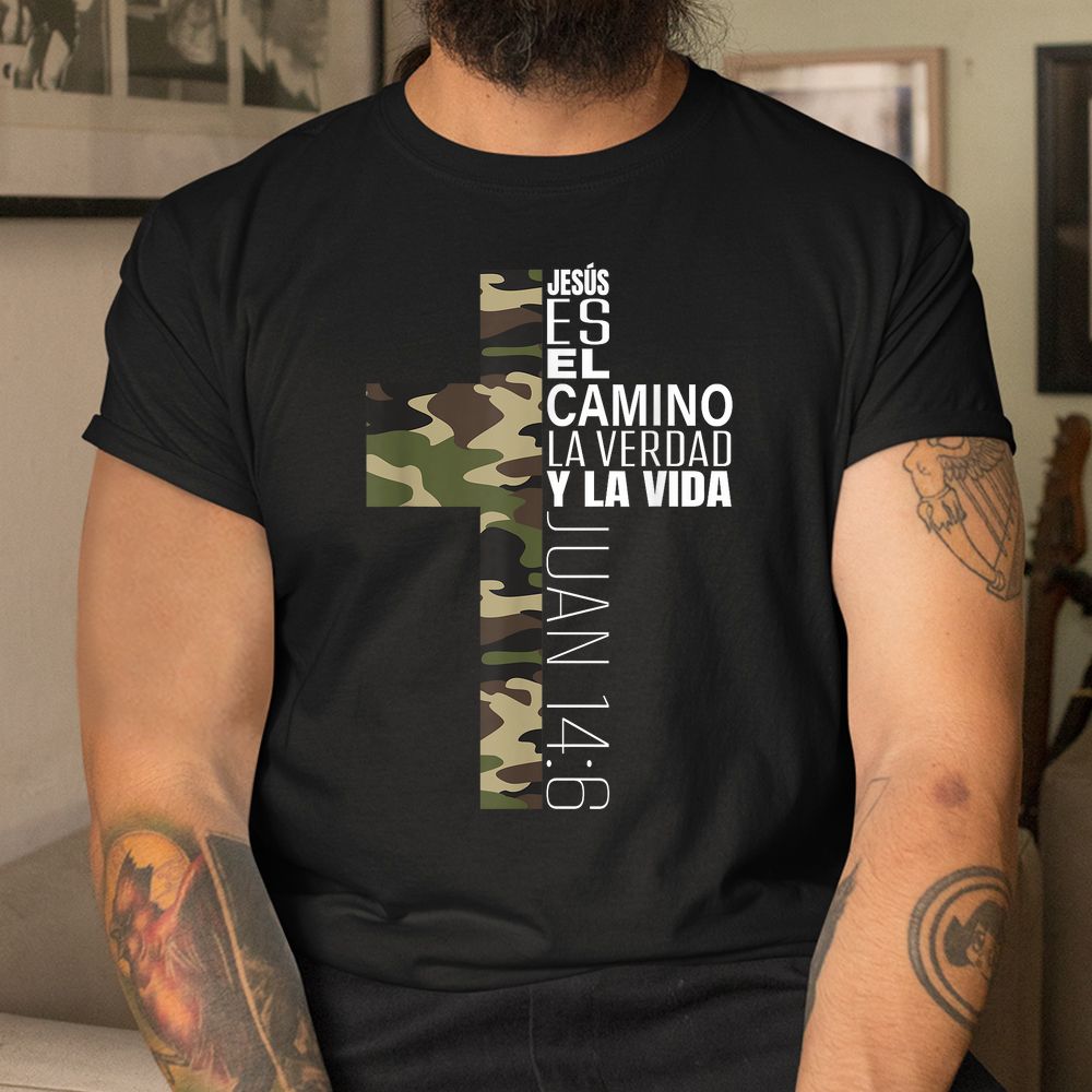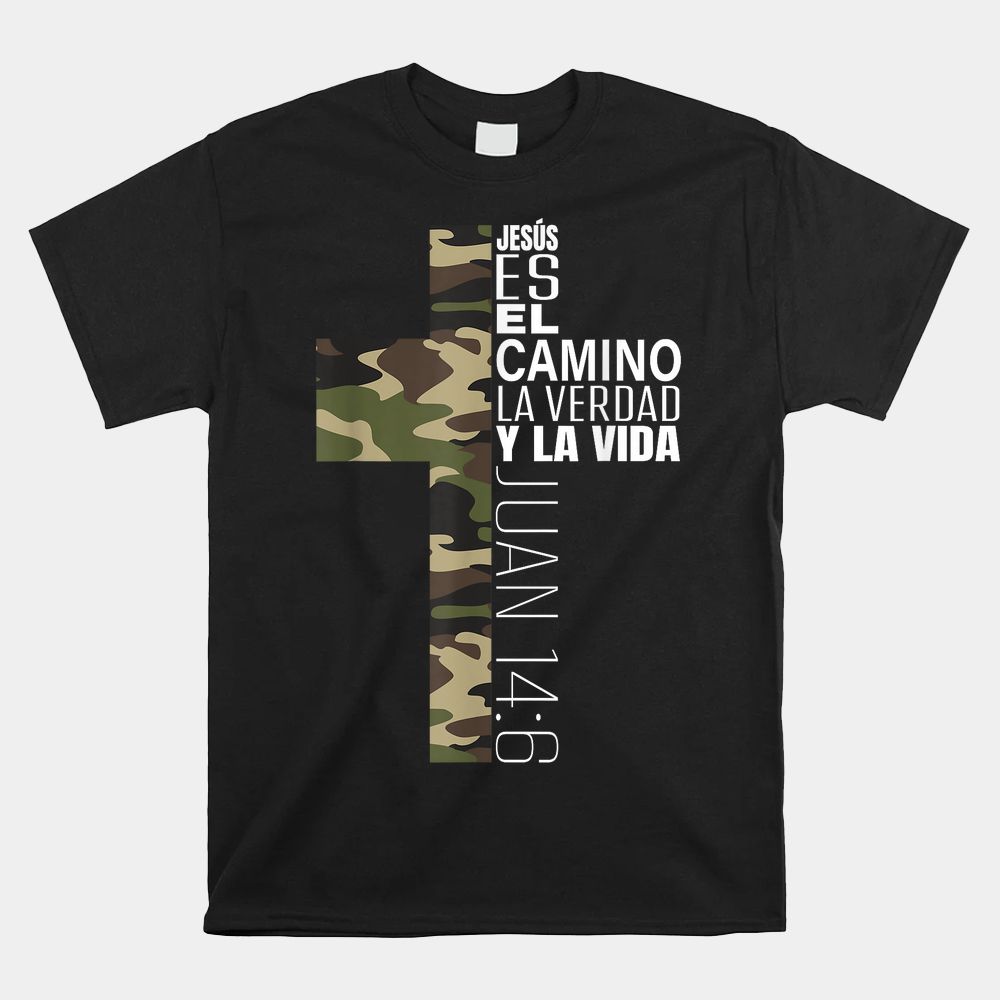 Jesus Christian Spanish Gifts Men Religious Verse Camo Cross Shirt