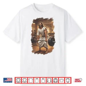 Jesus Lifting Weights Fitness Faith Motivation Shirt
