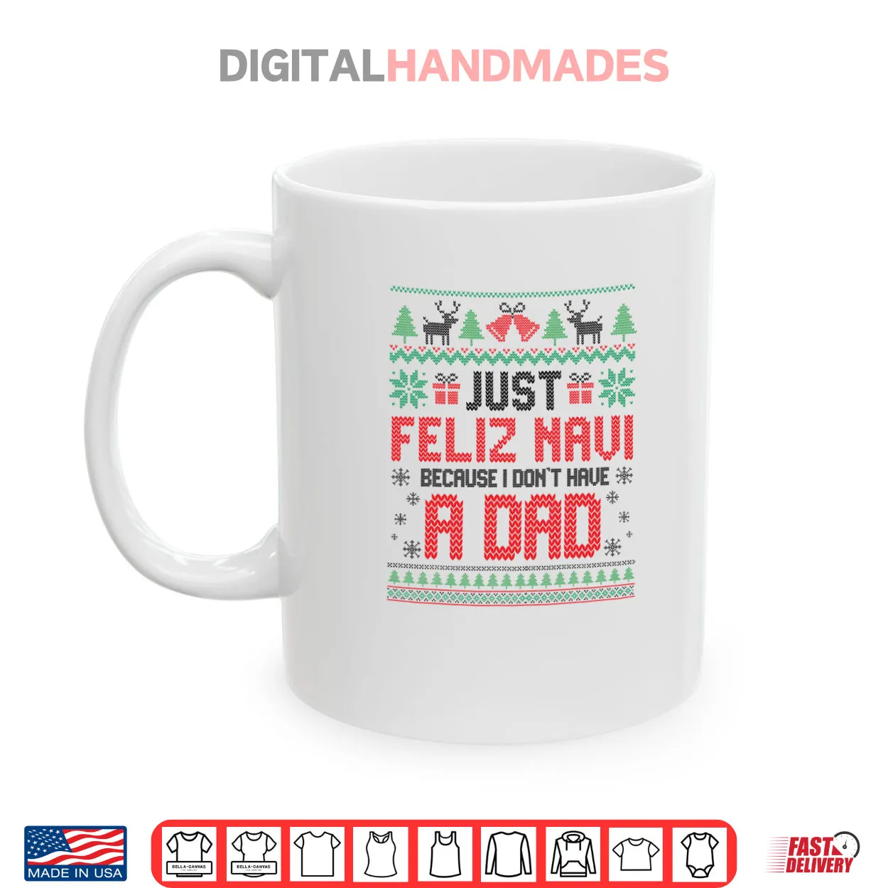 just feliz navi, don’t have a dad, spanish christmas, dark humor, holiday joke, witty saying, funny xmas, single parent, sarcastic, unique humor