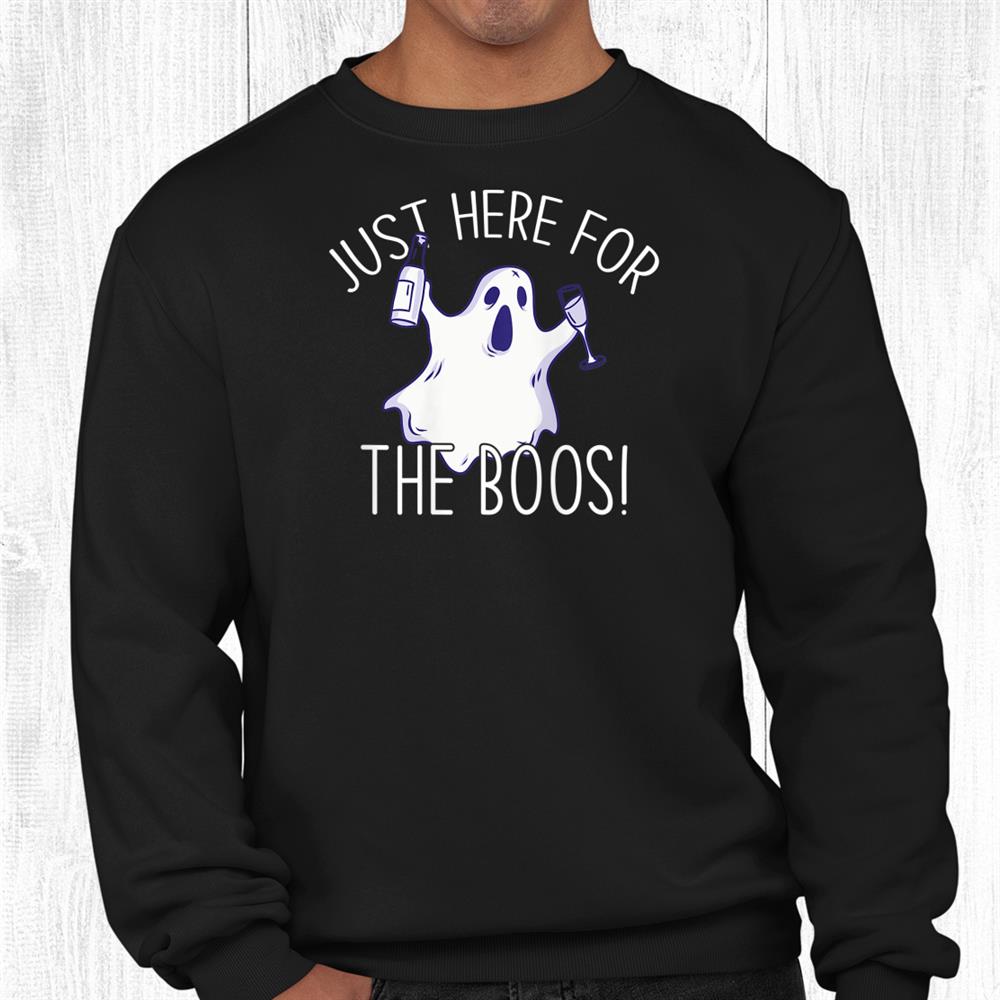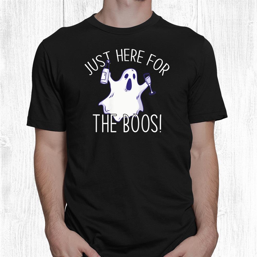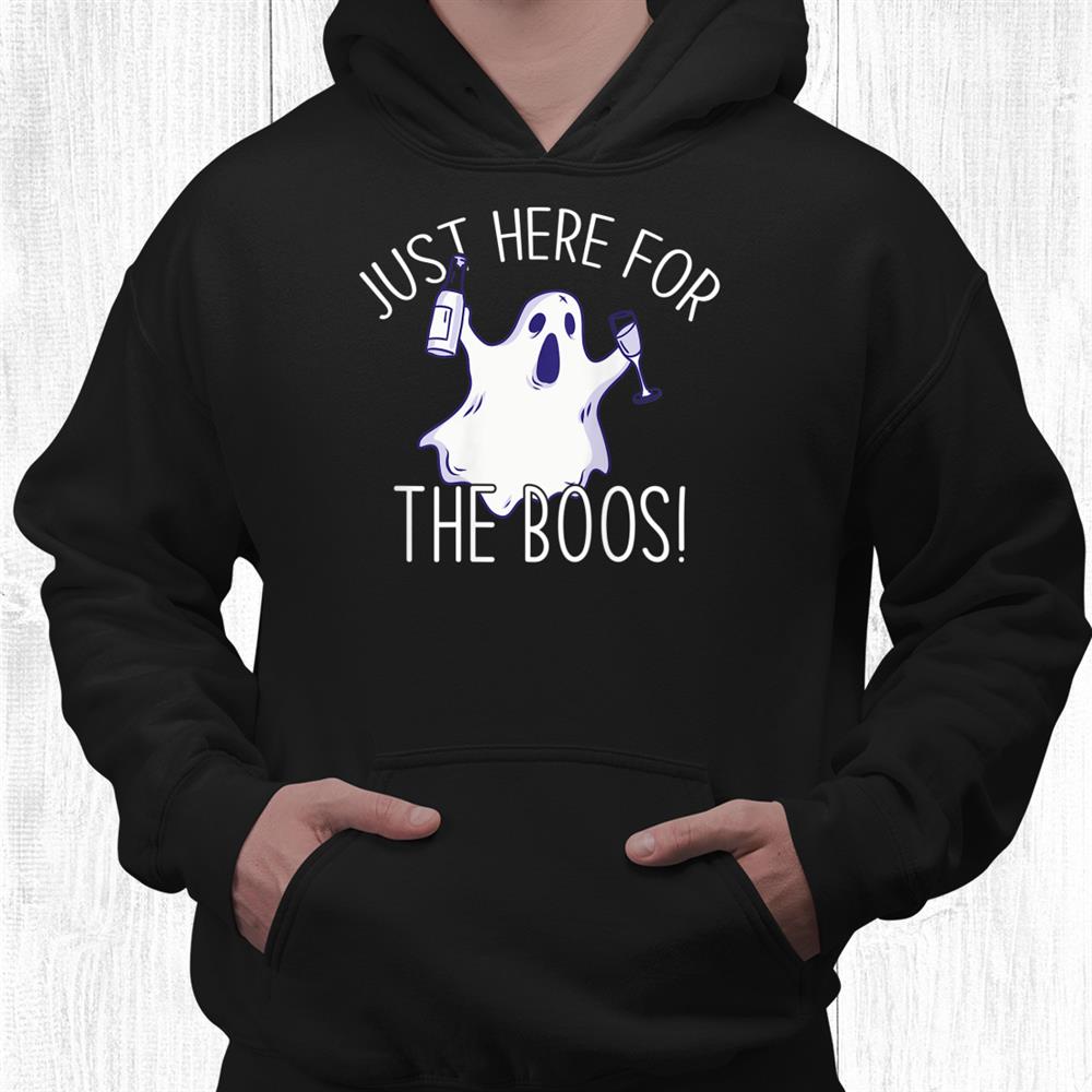 Just Here For The Boos Halloween Ghost Booze Meme On Back Shirt, hoodie, sweatshirt, long sleeve and ladies T-shirt