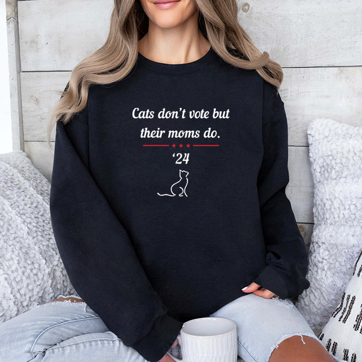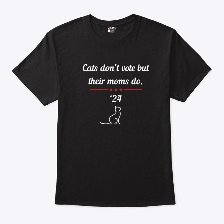 The shirt reads: “Cats Don’t Vote But Their Moms Do President 2024“. It plays on the idea that while cats, of course, cannot vote, their owners – often referred to as “cat moms” – do have a voice in the election.